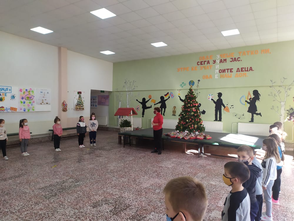 Со желба за добро здравје и многу успех во Новата година, директорката на ООУ „Ванчо Николески“ денес во холот на училиштето им подари новогодишни пакетчиња на првачињата. Таа искажа искрени пофалби за нивниот труд во изминатото полугодие, за нивната одговорност кон почитување на мерките за безбедност и нивната посветеност во учењето. Со надеж дека сите заедно ќе имаме подобра следна година, таа им посака среќни новогодишни и божиќни празници, да останат безбедни, за потоа одморени и среќни да се вратат во училишните клупи во второто полугодие. Првачињата под менторство на нивните наставнички имаа подготвено песна и стихотворба, преку кои се заблагодарија на новогодишните желби и пакетчиња.