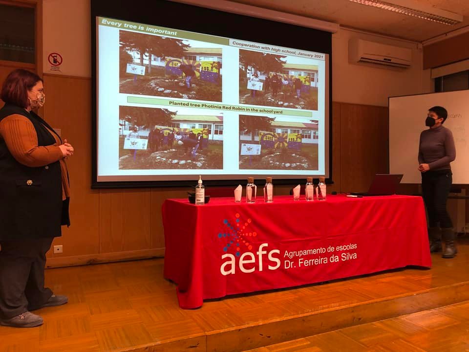 Во периодот од 29.11 – 3.12. 2021 година во Португалија се одржа втората мобилност од Еразмус+ проектот „Clean nature – long life“ („Чиста природа – долг живот“). На истата присуствуваа претставници од училишта од сите земји партнери во проектот, и тоа: Велика Британија, Турција, Португалија и Романија. Од нашето училиште претставници на оваа мобилност беа: директорката Елена Ел Нади, наставничката по англиски јазик Елисабета Настоска и педагогот Весна Терзиоска. На оваа мобилност се работеше според претходно утврдена агенда за размена на искуства од областа на екологијата и вклученоста на училиштата во зачувување на животната средина. Нашето училиште презентираше дел од активносите што се прават на ова поле со нашите ученици, интеграцијата на еко содржините во образовниот курикулум, како и што е она што се планира во иднина да се прави за да се придонесе до почиста животна средина. Во рамки на посетата имавме прием кај Градоначалникот на São João da Madeira и од советникот за образование во Локалната самоуправа.Првата мобилност од проектот „Clean nature – long life“ се реализира во ноември 2019 година, а домаќин училиште беше ООУ „Ванчо Николески“ – Лескоец, Охрид, кога се работеше на тема „Климатски промени“. Еразмус+ проектот трае до август 2022 година.