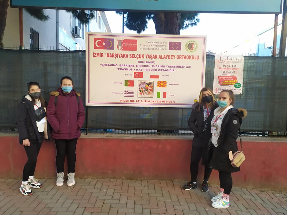 Во периодот од 15.01 – 20.01.2022 година делегација од ООУ „Ванчо Николески“ присуствуваше на втората мобилност од Еразмус+ проектот „Breaking barriers through sharing treasures“ („Бришење бариери преку споделување културни богатства“) што се реализира во Измир, Турција. Темата на оваа мобилност беше „Бисерот на Егејот, Смирна (Измир)“, а целта беше да се споделуваат знаења и доживеат искуства за културното наследство од сите земји учесници, со посебен акцент на земјата домаќин. Освен претставници од нашето училиште, присуствуваа и претставници од: Турција, Полска, Грција и Италија (онлајн). Претставници на оваа мобилност од ООУ „Ванчо Николески“ беа: наставничката по англиски јазик Елисабета Настоска, педагогот Весна Терзиоска, како и 4 ученички од деветто одделение: Мелани Котоска, Наталија Караџова, Илијана Климоска и Марија Ѓорѓиеска.