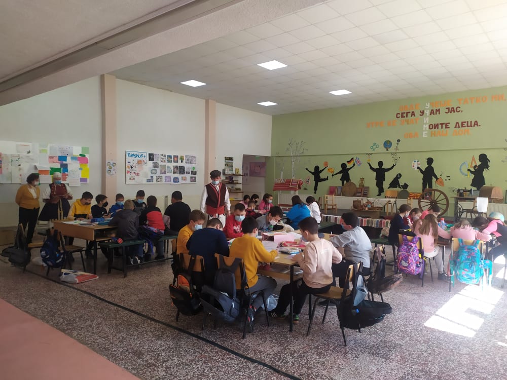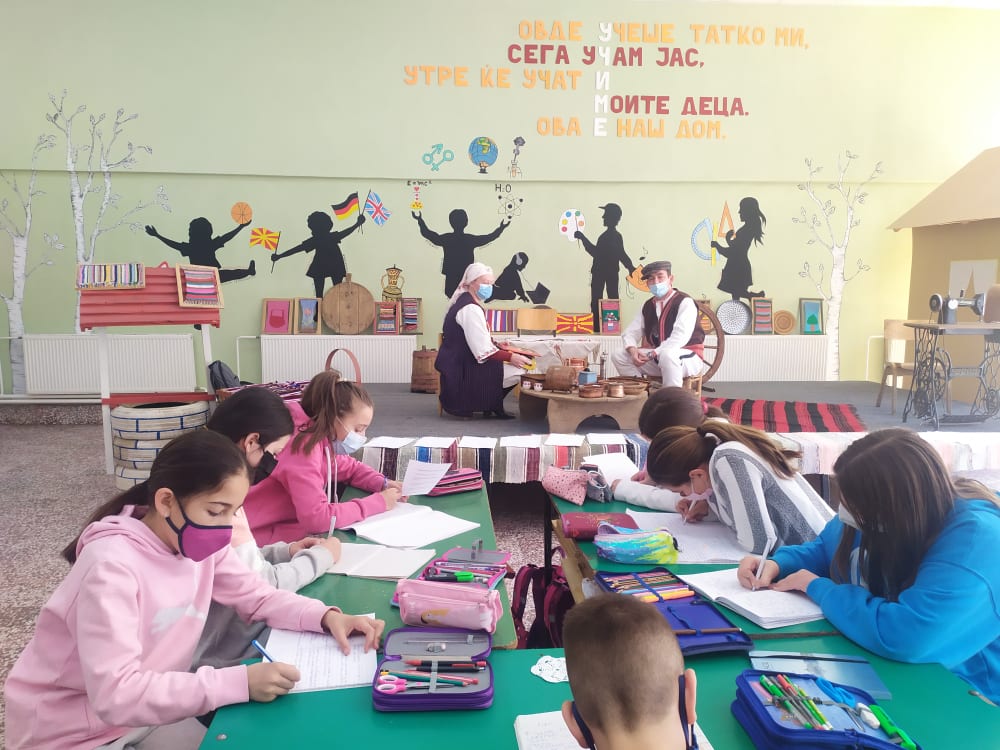 На 24.03.2022 година во централното училиште во Лескоец се реализира интегриран наставен ден со учениците од V одделение, под раководство на наставниците Јасна Бадалоска и Сашо Климоски. Темата на денот беше Фолклор. Наставата се реализираше во училишниот хол што беше комплетно уреден во корелација со темата, односно просторот изобилуваше со традиционален мебел и предмети со фолклорни мотиви. Најпрво беше прочитана македонска народна приказна од која беа извлечени реченици што потоа учениците ги употребуваа во директен и индиректен говор (наставната содржина по македонски јазик). По часот Општество (Македонија во светот) учениците повторуваа за местоположба на Македонија во светот, Европа и Балканскиот Полуостров, соседи со кои граничи, беа посочувани градовите, селата, планините, реките, езерата, црквите и манастирите, а содржината беше интегрирана со математика, барајќи на која координати се наоѓаат одредени локации на картата. Содржината по математика беше заокружена со координати во координатен систем – да откријат буква и да состават збор во групата. Наставната содржина по Ликовно образование се работеше на импровизиран разбој, каде учениците ги изразија своите вештини и изработија креации во стил на народните ракотворби на нашите претци. Во меѓувреме наставниците ги поттикнуваа учениците да пеат македонски народни песни. Заинтересираноста, соработката, активноста на учениците, беа двигателот за овој ден да биде повеќе од успешен. Учениците уживаа во претставата на наставниците кои ги водеа низ лавиринтите на ракотворбите, приказните, песните, традицијата на нашиот народ во не толку далечното минато.