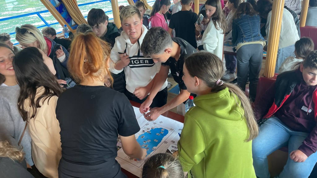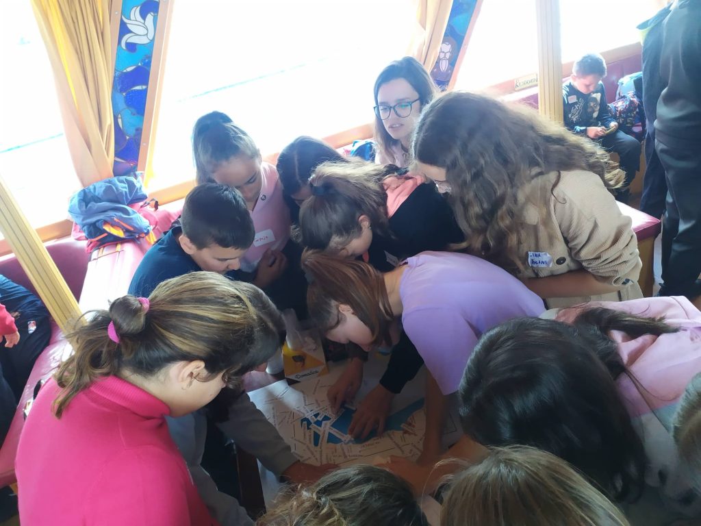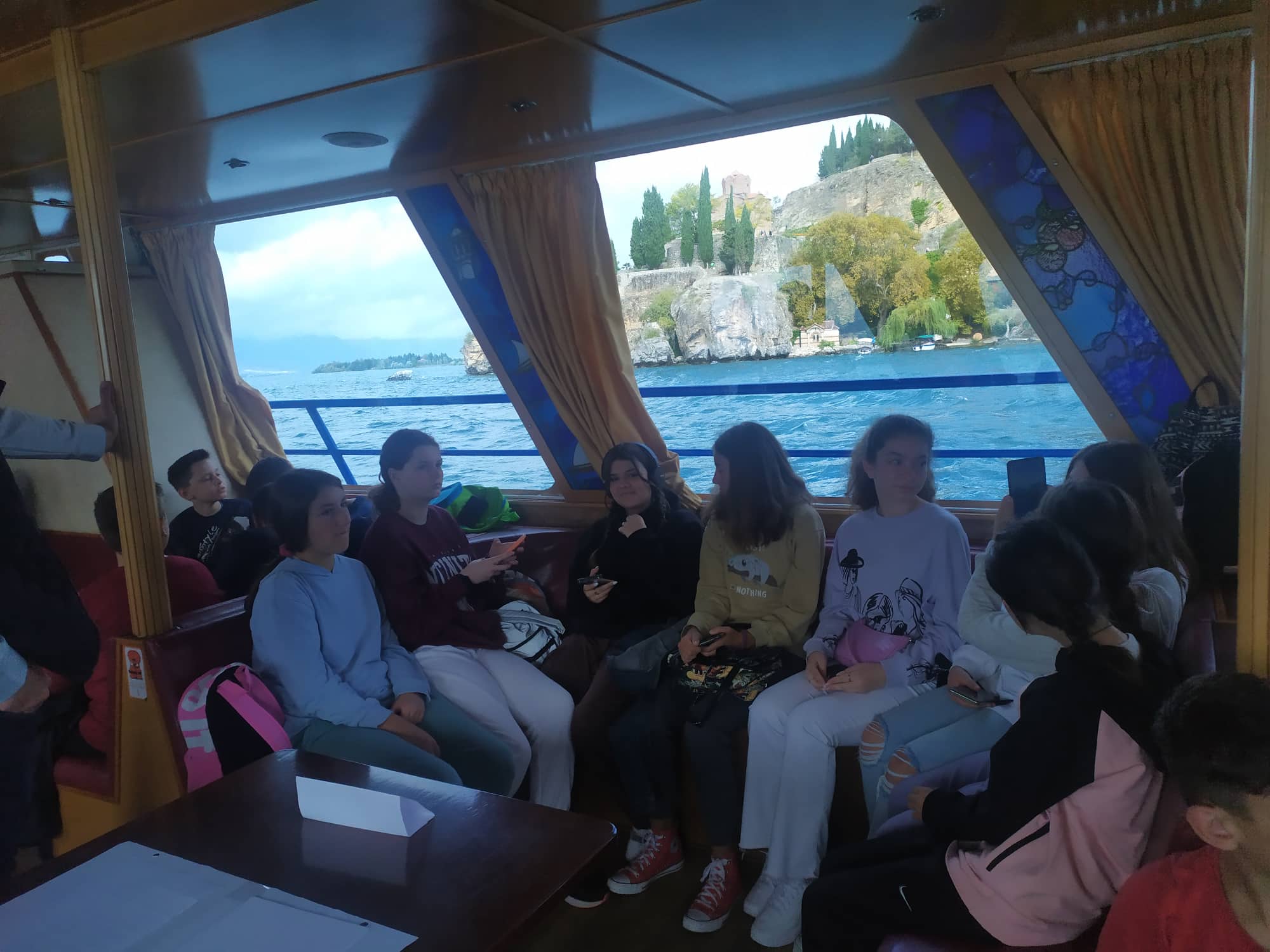 30 ученици од еколошката секција од нашето училиште под менторство на одговорната наставничка Татјана Пуцоска Бунчевска беа дел од едукативната екскурзија за мапирање и правилно управување со трската во Охридското Езеро, која се реализира на 29-ти Септември на бродот Александрија. Едукативната екскурзија беше наменета за ученици од основните училишта, а освен нашите имаше ученици и од ООУ „Братство единство“ и ООУ „Св. Климент Охридски“. Исто така имаше претставници и од Секторот за образование од општина Охрид. Целта на едукативниот настан беше подигнување на еколошката свест кај најмладите, посета на места во Охридското Езеро важни за трската, стекнување знаења за правилен третман на трската и нејзината важност за флората и фауната во Охридското Езеро. Учениците преку најразлични едукативни вежби и работилници се запознаваа меѓусебно, стекнаа нови знаења за зачувување на животната средина, практични вештини, а во исто време се дружеа и поминаа прекрасно корисно време заедно.