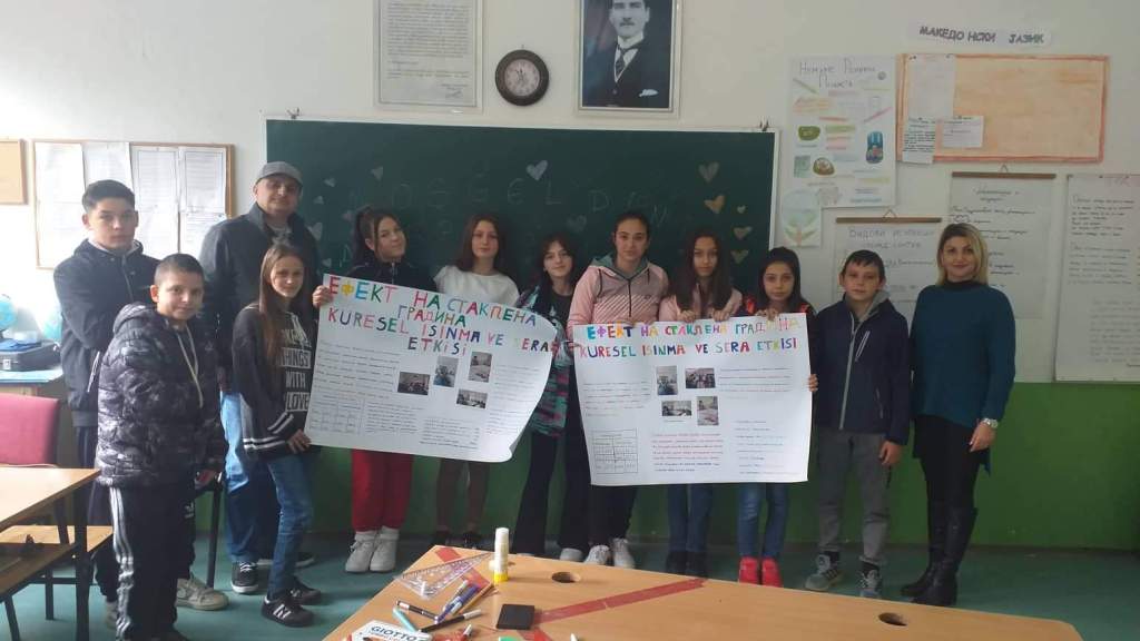 Работилницата по географија беше на тема: ”Глобално затоплување и ефект на стаклена градина”. На оваа работилница учествуваа 2 наставници и 12 ученици. Преку презентација наставниците ги објаснуваа начините на загадување на воздухот, поделбата на загадувачите, осебено опасните материи како сулфурдиоксид, азотни оксиди, јаглероден моноксид, олово и оловни сулфати и различни аероседименти. Потоа учениците правеа истражувања со помош настаклено ѕвоно. Учениците го започнаа експериментот, со ставање на запалени свеќи во стакленото ѕвоно. Заедно учениците го набљудуваа зголемувањето на температурата во ѕвоното со помош на топломерот, во однос на околината, потоа го забележуваа намалувањето на кислорот со намалување на пламенот и евентуално гасење. На крајот ги сумираа главните стакленички гасови и влијанието на животната средина во однос на стаклената градина и намалувањето на кислородот во животната средина, а со тоа и глобално зголемување на средната на возухот. На втората средба учениците водени од наставниците изработија хамери за глобално затоплување и ефект на стаклена градина кои ќе бидат изложени во училиштата.