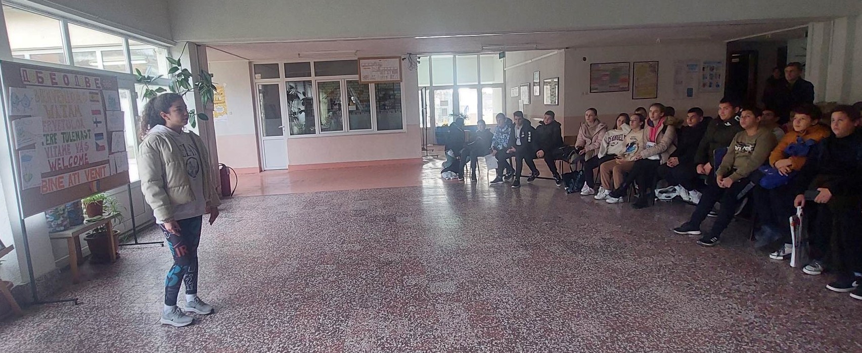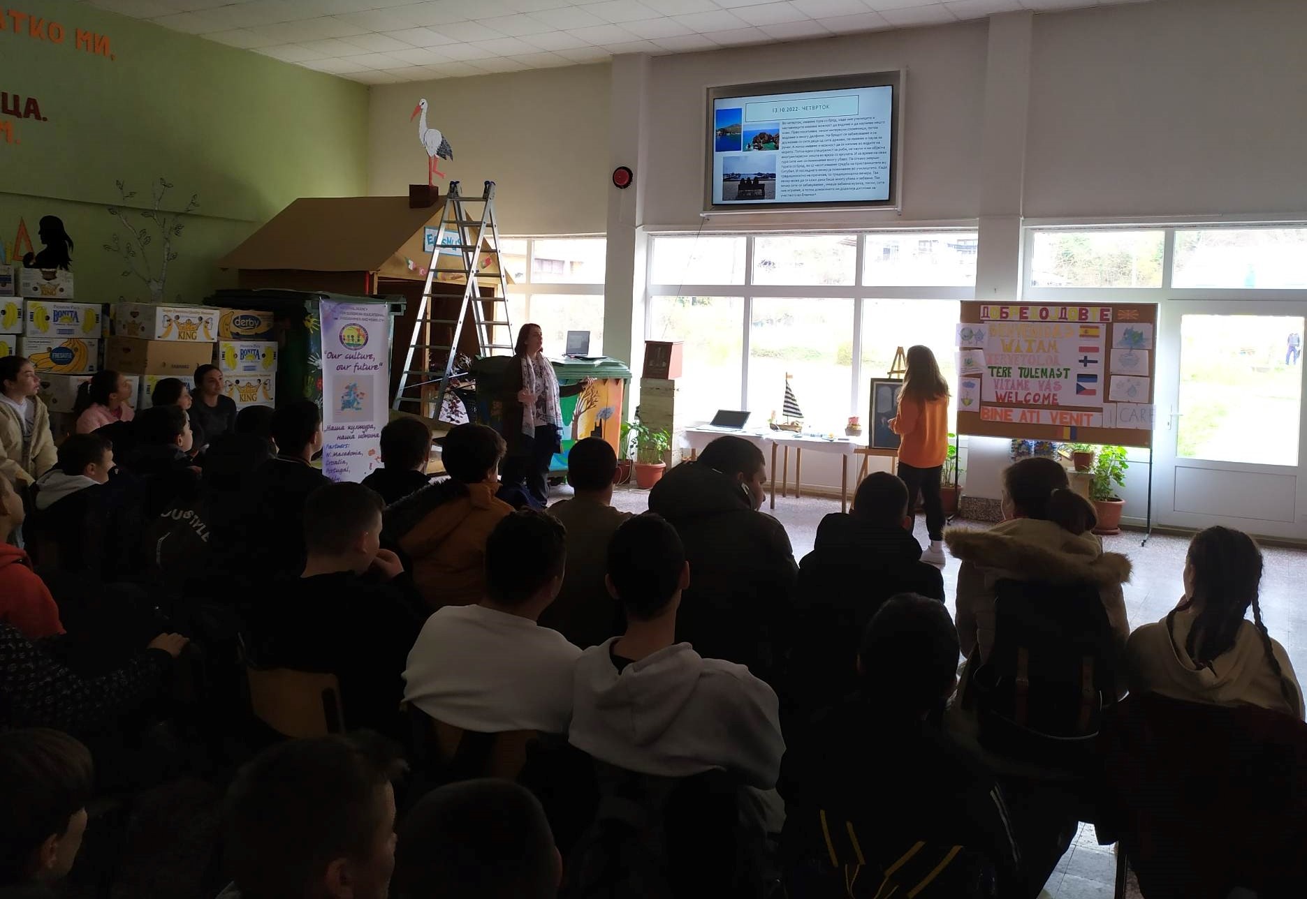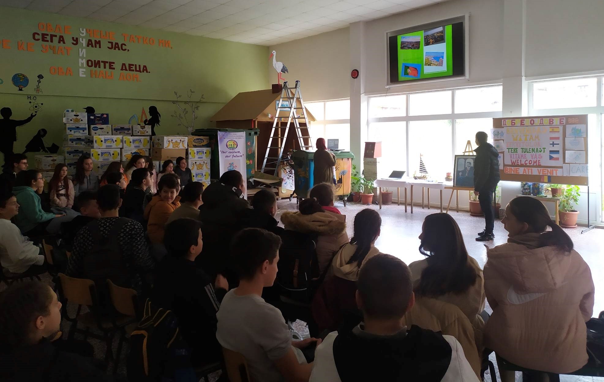 Како дел од Еразмус активностите на Еразмус+ клубот при ООУ „Ванчо Николески“, наставничката Елисабета Настоска и педагогот Весна Терзиоска, како и учениците: Бојана Илиеска, Сара Аслимоска, Дејан Буџакоски, Јована Крстаноска и Златко Митрески, во училишниот хол презентираа искуства и впечатоци од нивното учество на образовната мобилност во Palmela – Setúbal, PORTUGAL во рамки на Еразмус+ проектот „Our culture, our future“. Преку Power point и видеа тие на интересен начин ги дисеминираа активностите во кои беа вклучени, искуствата што ги разменија, знаењата кои ги стекнаа и местата што ги посетија. Нивните впечатоци за оваа образовна мобилност беа позитивни, со порака до останатите ученици и наставници да се трудат да се стекнат со можност за едно вакво корисно патување.