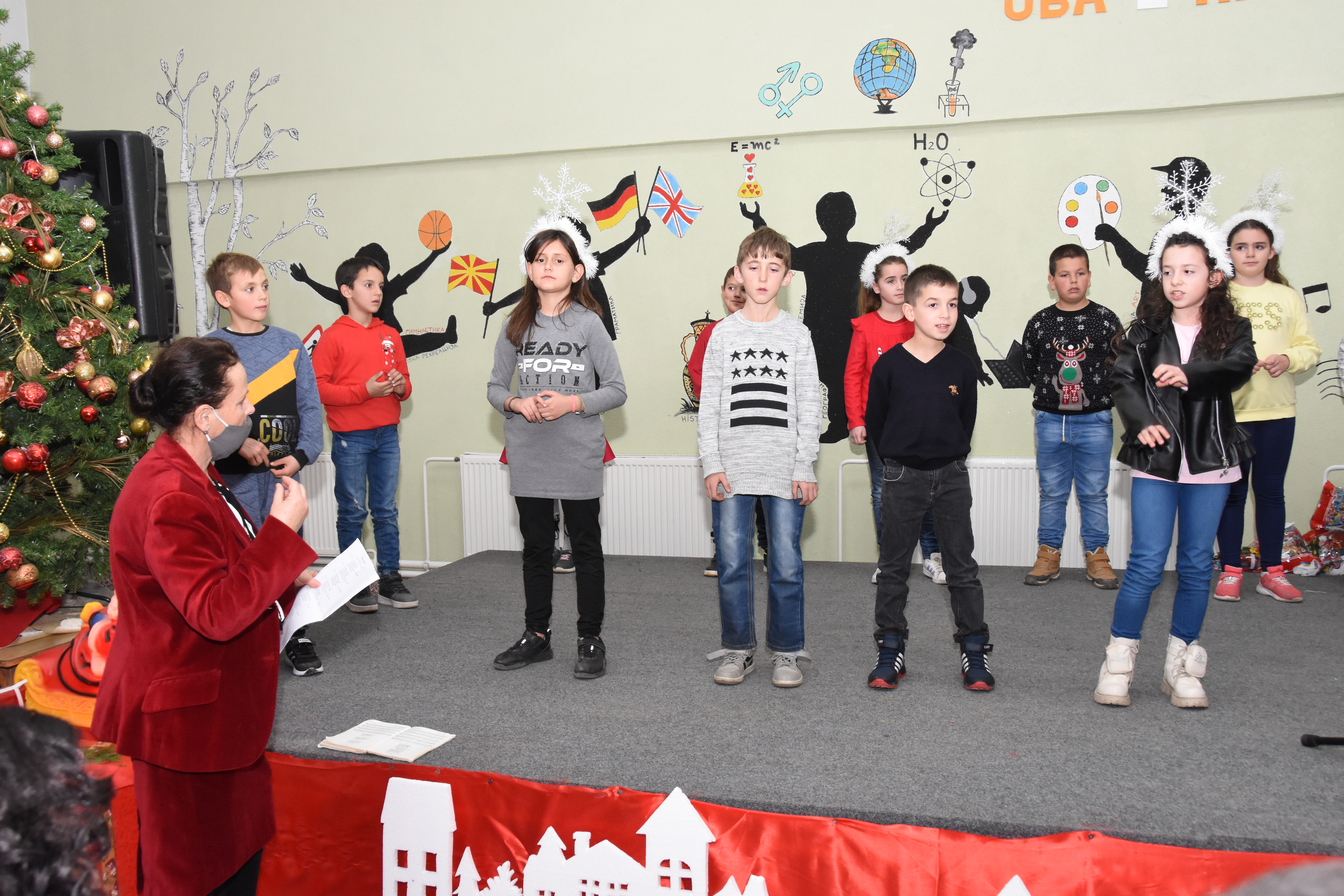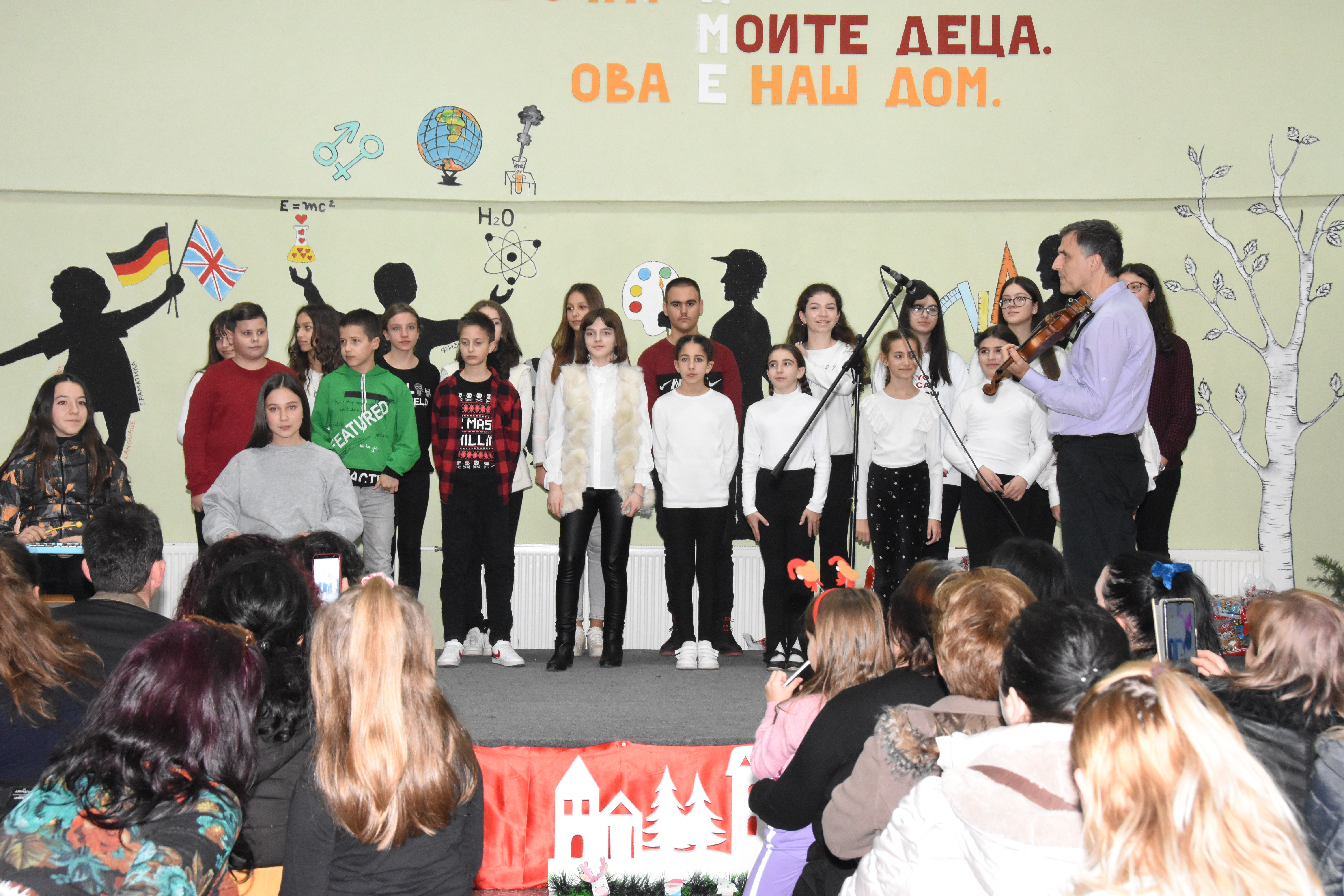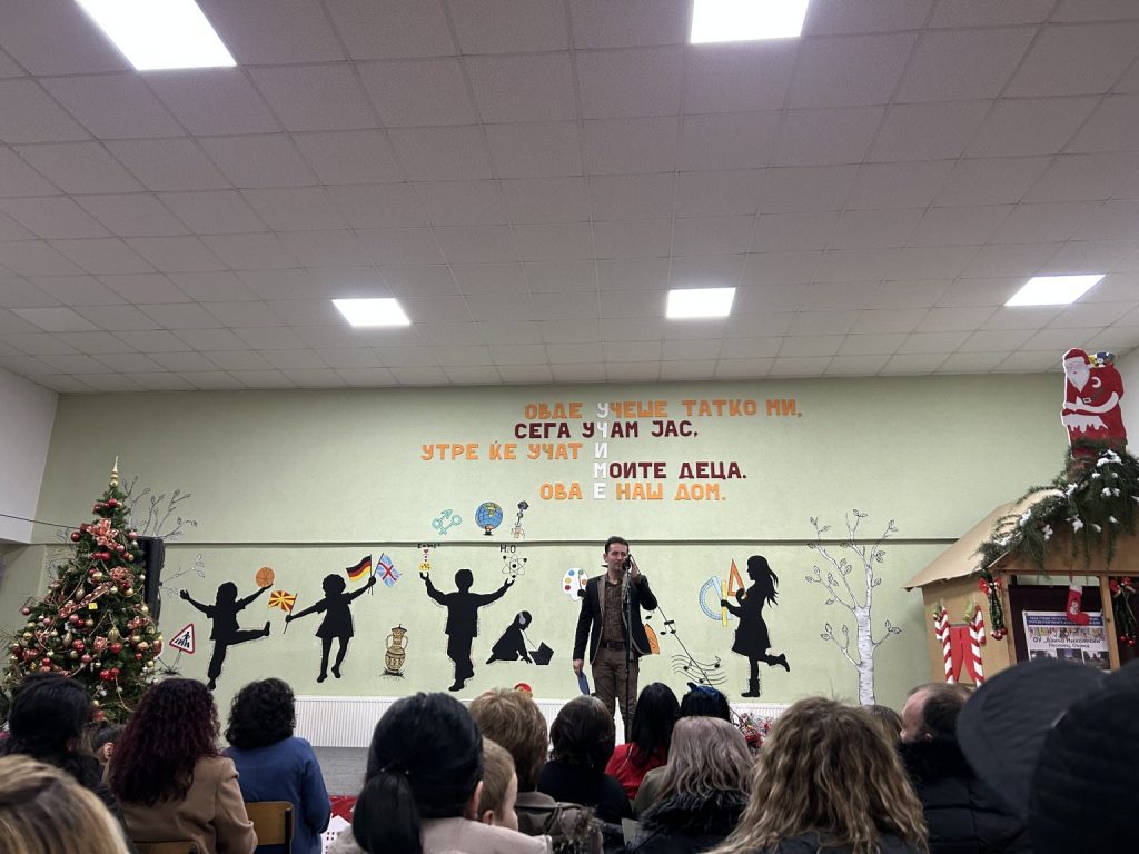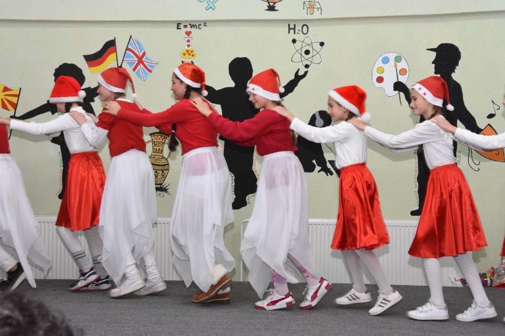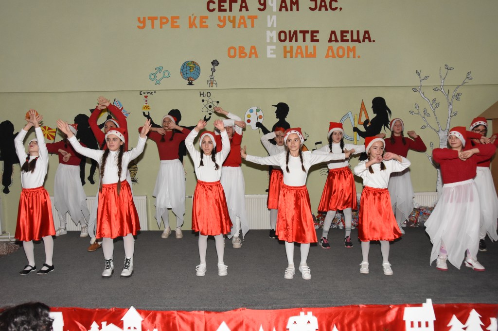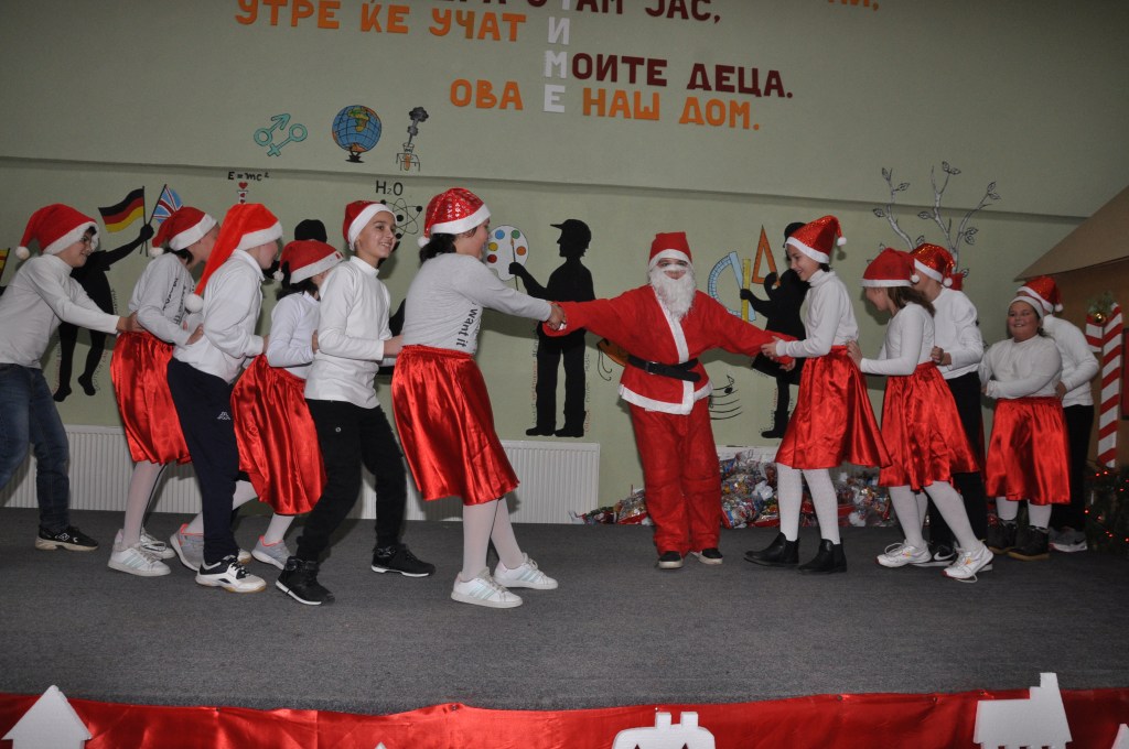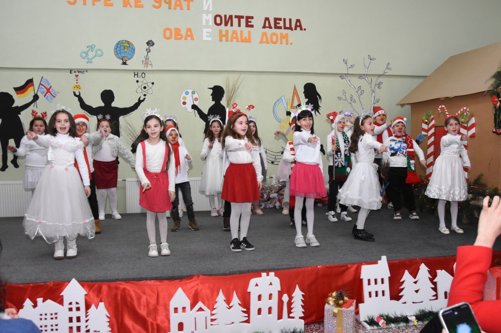 Свечената приредба започна со настап на училишниот хор, а потоа следуваше поздравен говор од директорот на училиштето Сашо Климоски. Тој ги честита престојните празници и се заблагодари на родителите и помагателите за поддршката што ја даваат на училиштето на секое поле, истакнувајќи дека сите сме тука за да обезбедиме услови за учениците, бидејќи секое дете заслужува да биде среќно.