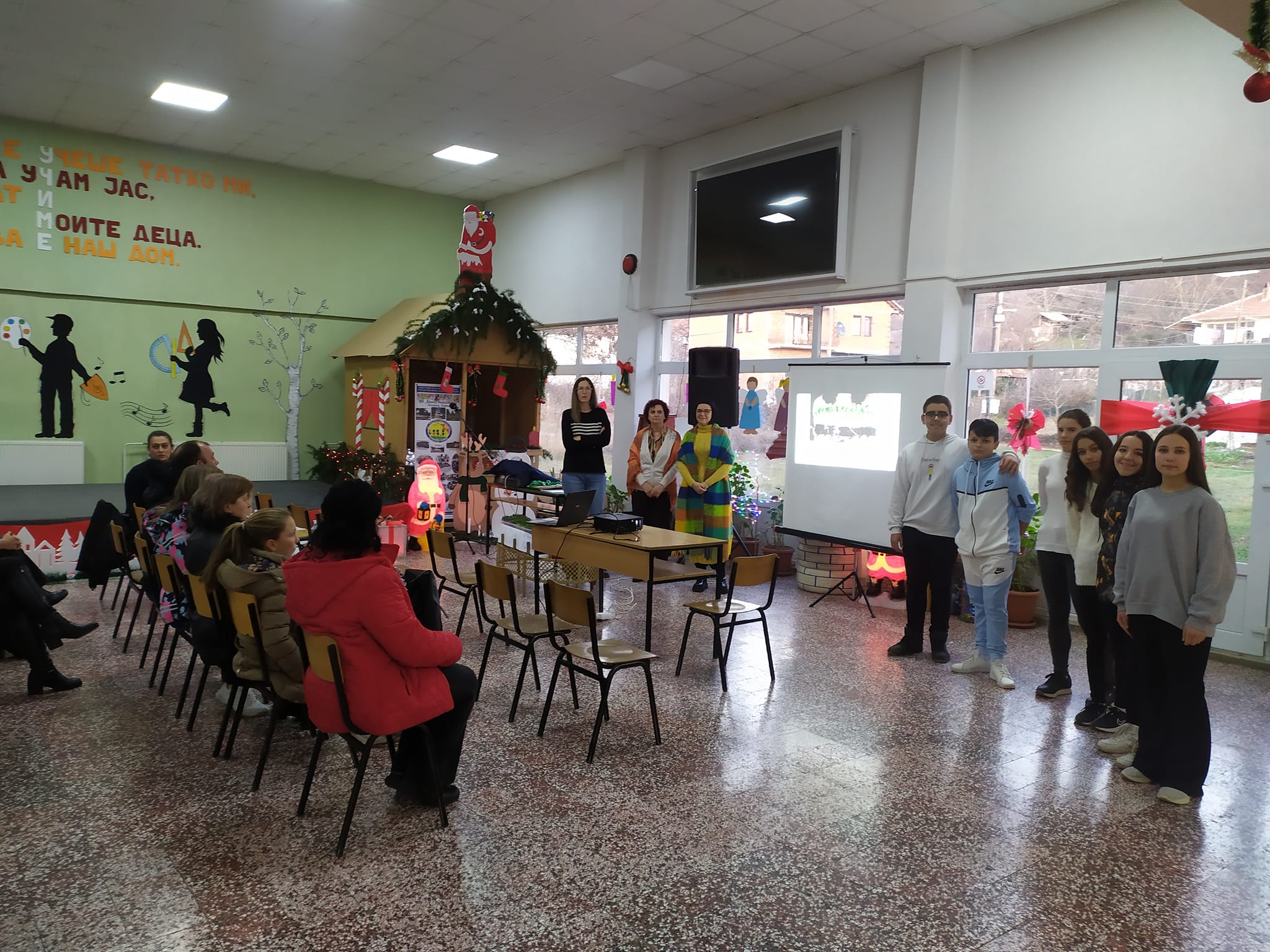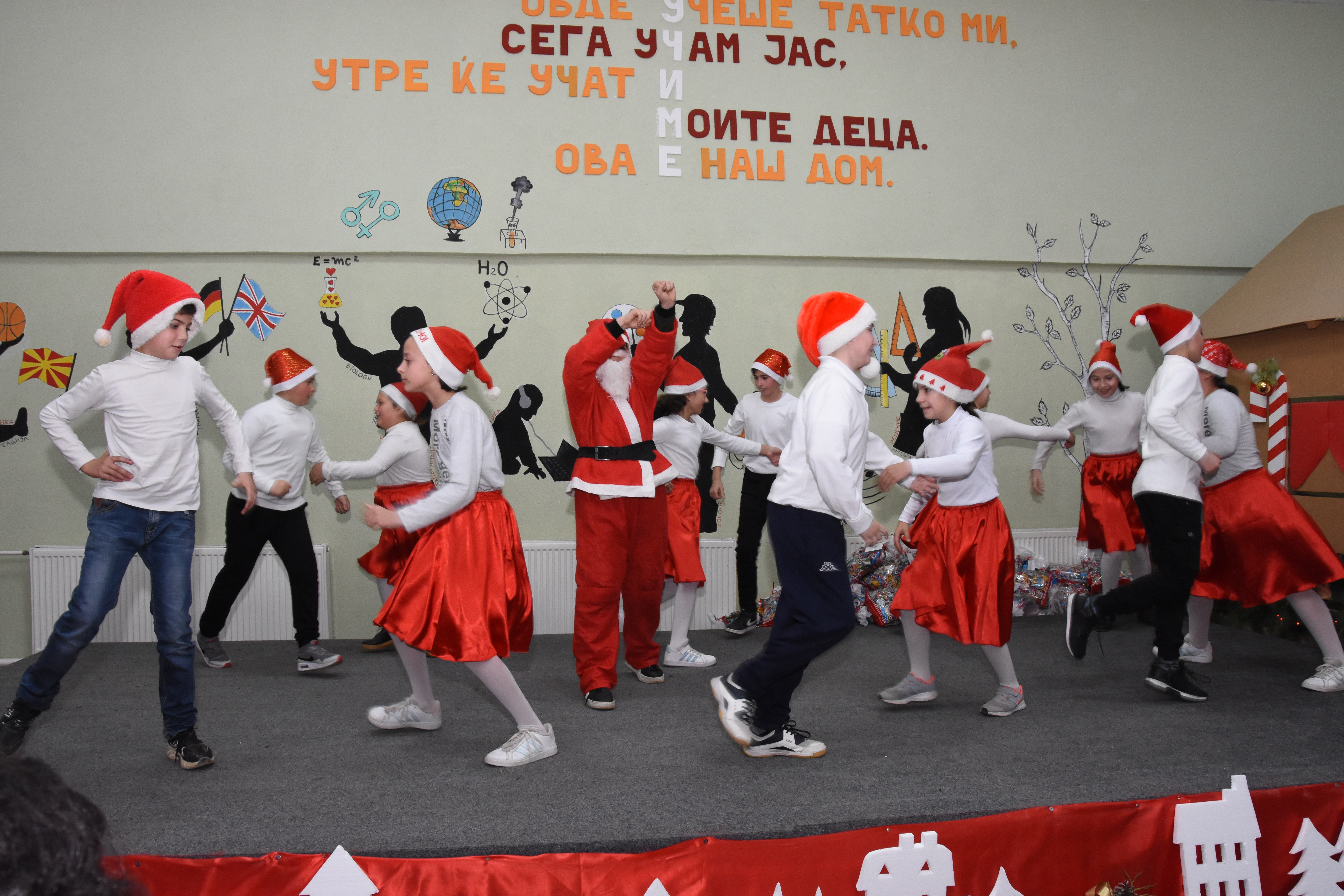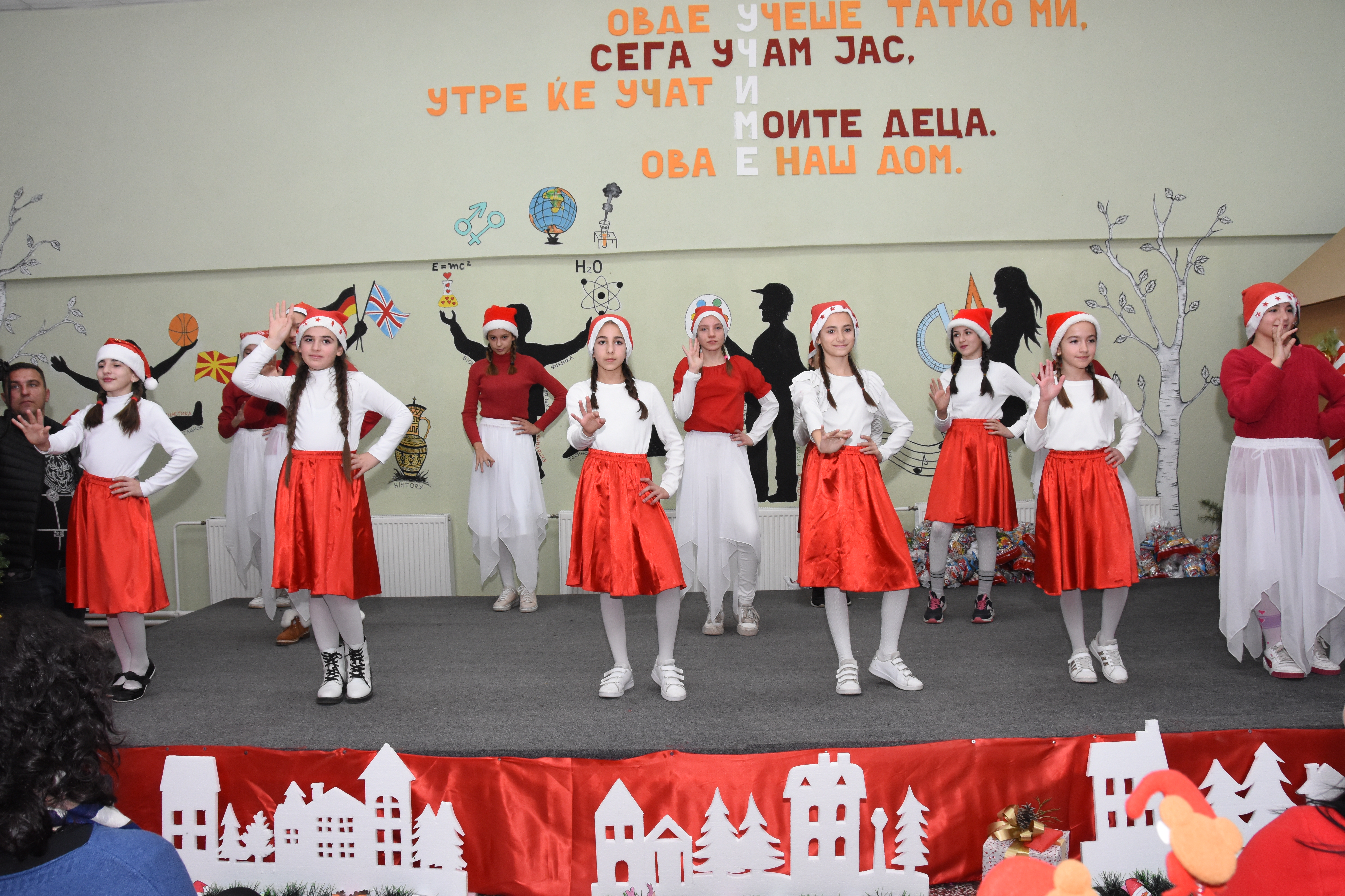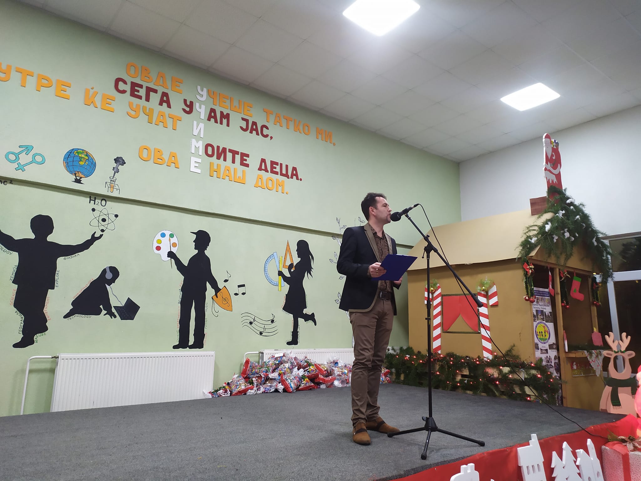 Свечената приредба започна со настап на училишниот хор, а потоа следуваше поздравен говор од директорот на училиштето Сашо Климоски. Тој ги честита престојните празници и се заблагодари на родителите и помагателите за поддршката што ја даваат на училиштето на секое поле, истакнувајќи дека сите сме тука за да обезбедиме услови за учениците, бидејќи секое дете заслужува да биде среќно.