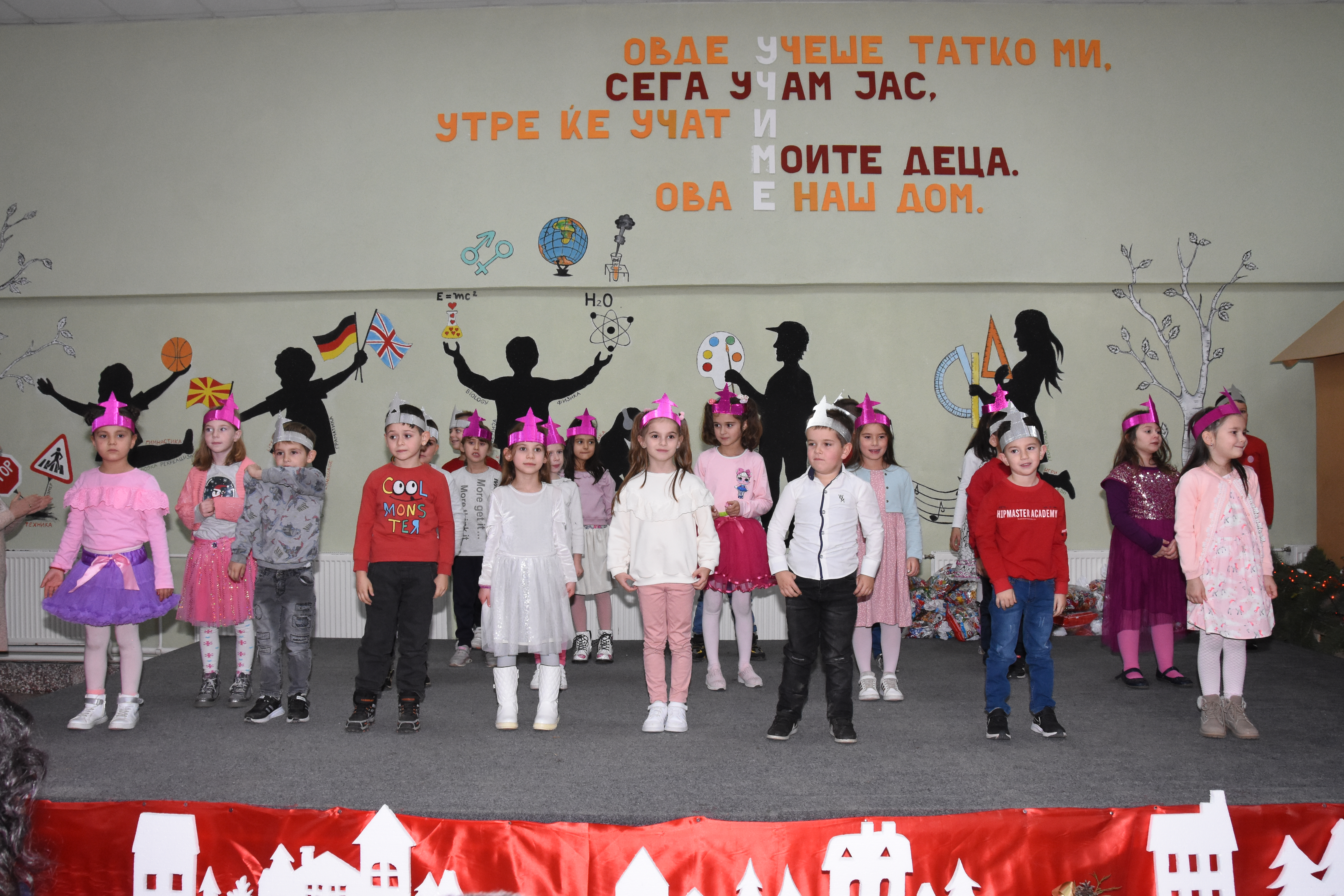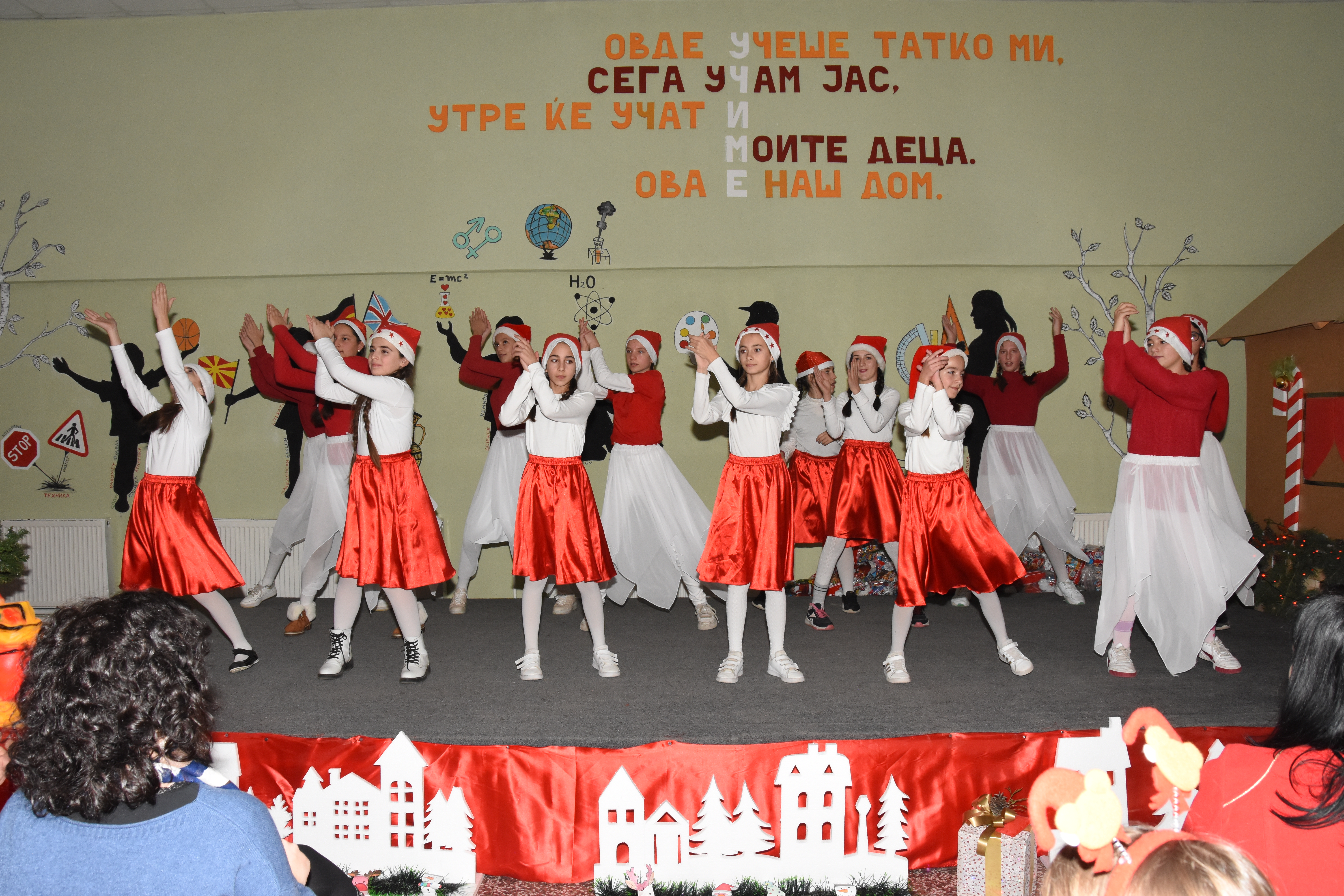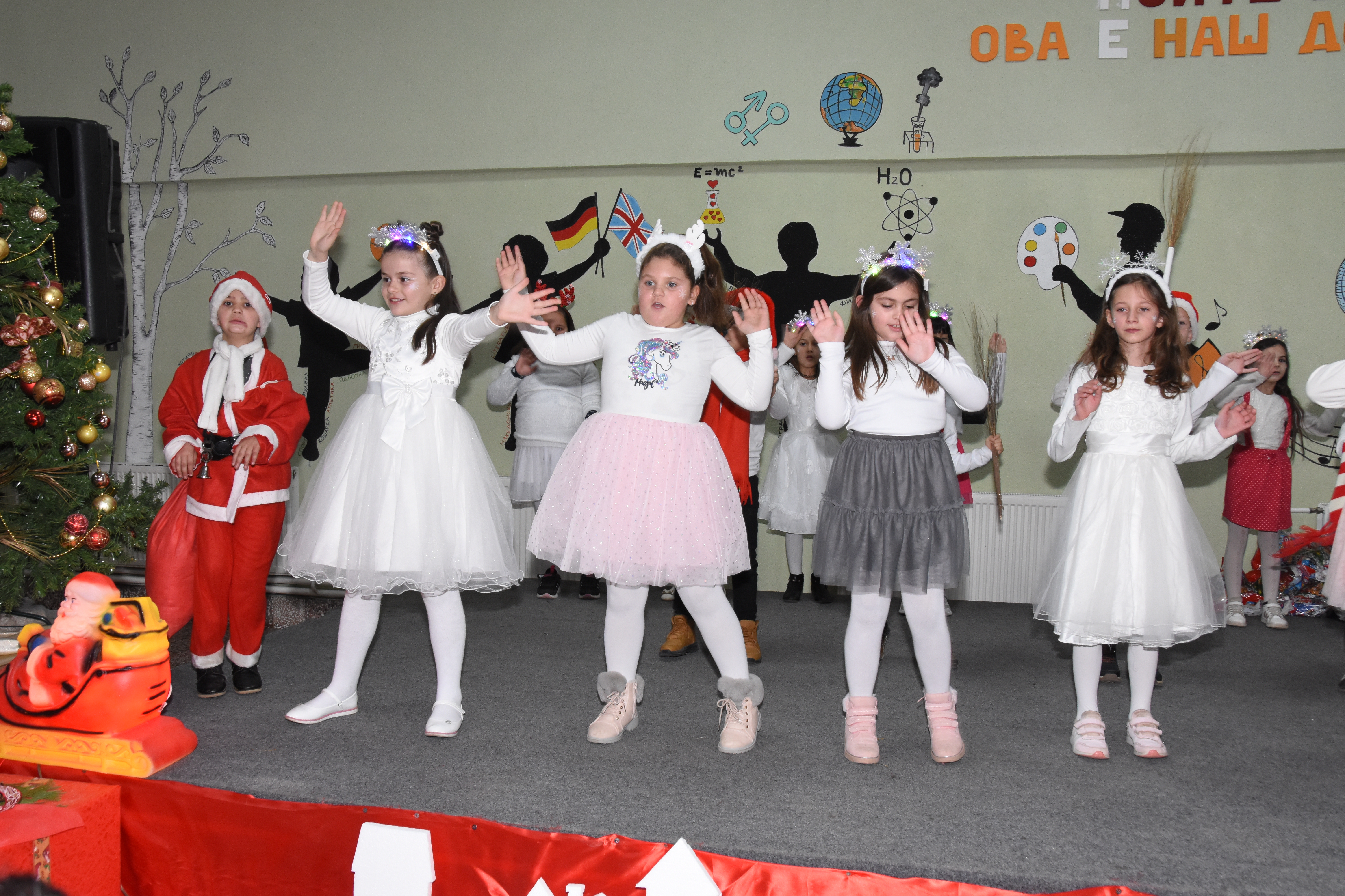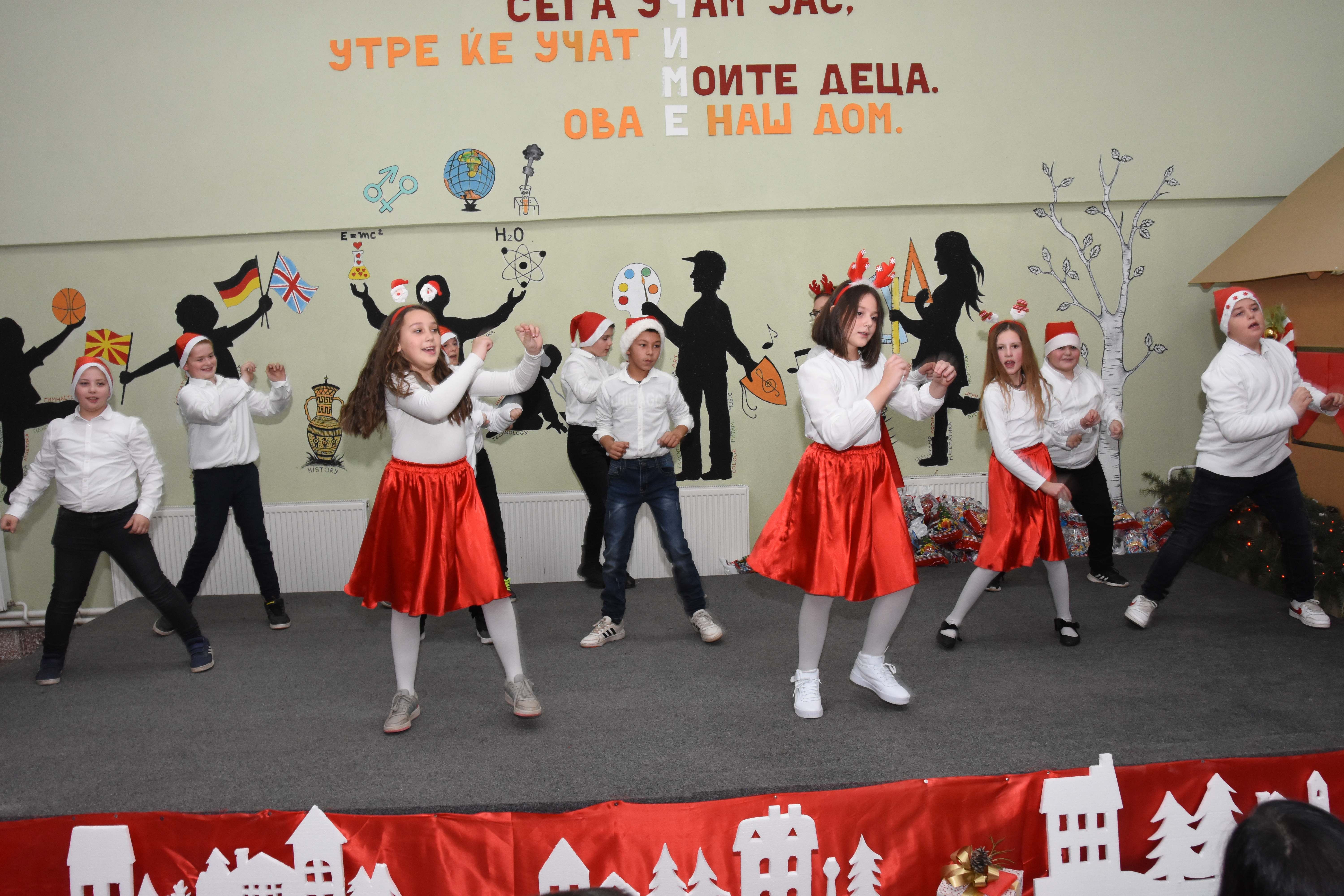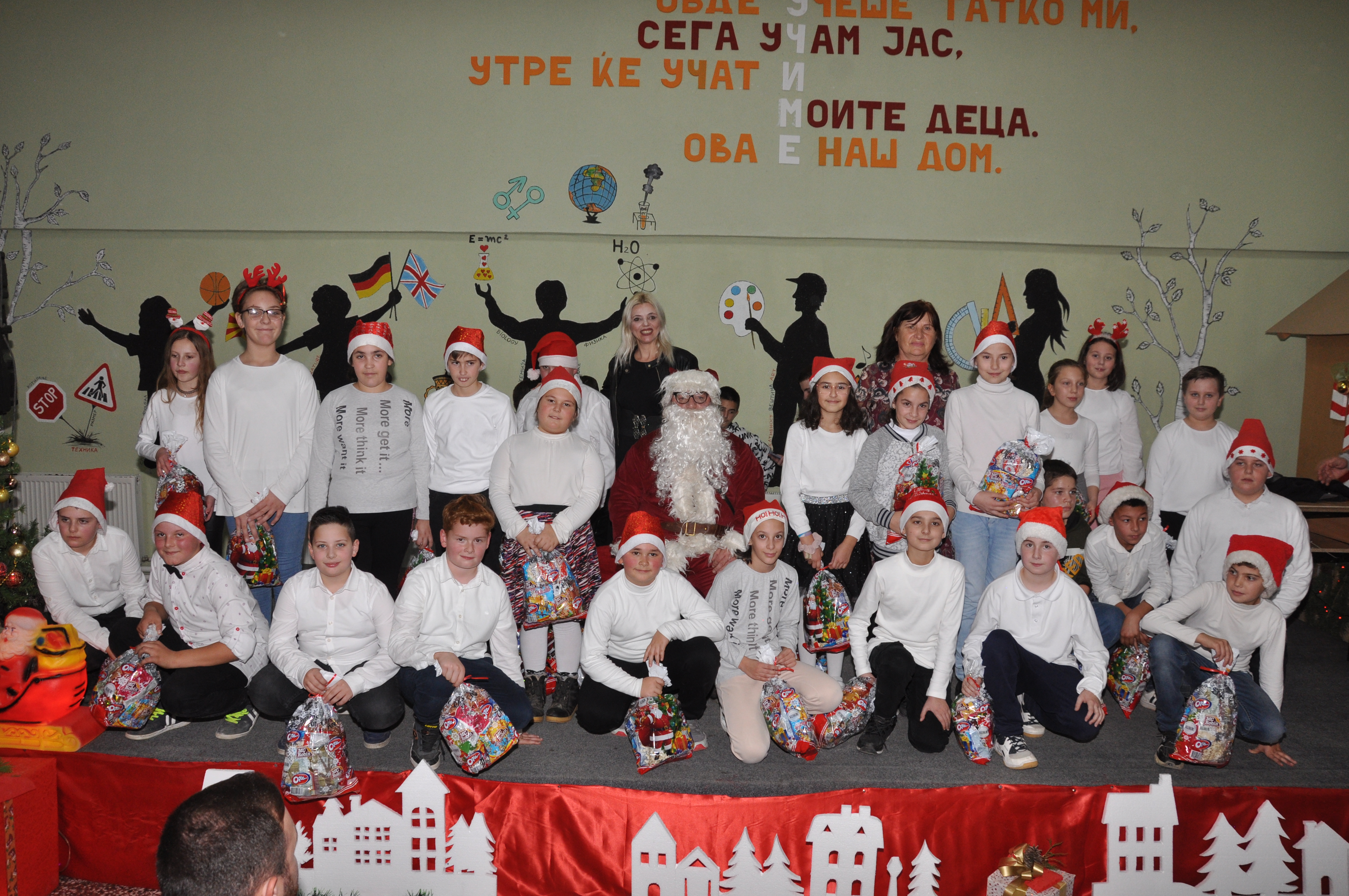 Свечената приредба започна со настап на училишниот хор, а потоа следуваше поздравен говор од директорот на училиштето Сашо Климоски. Тој ги честита престојните празници и се заблагодари на родителите и помагателите за поддршката што ја даваат на училиштето на секое поле, истакнувајќи дека сите сме тука за да обезбедиме услови за учениците, бидејќи секое дете заслужува да биде среќно.