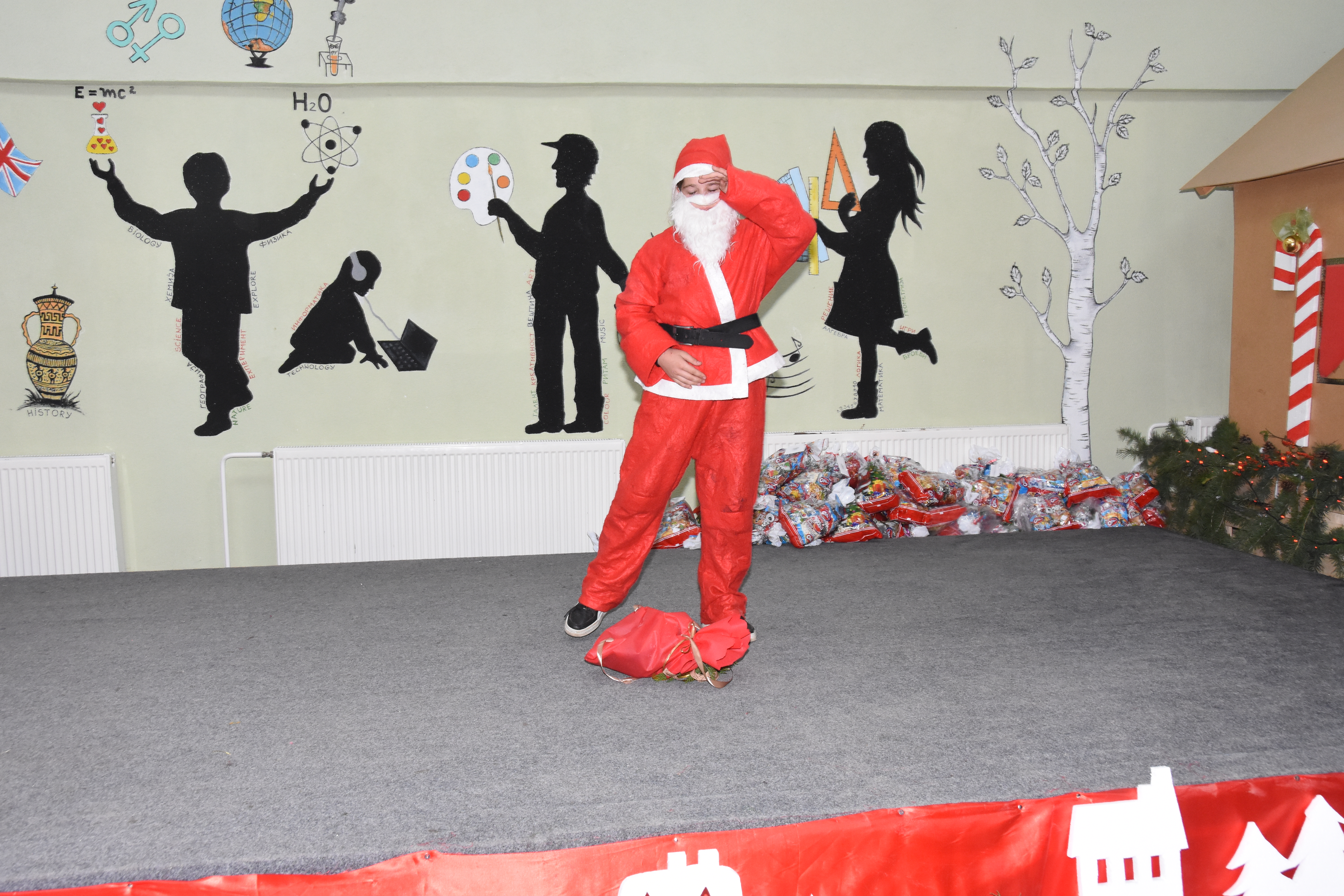 Програмата продолжи со богати музички и рецитаторски точки подготвени од учениците и наставниците од одделенска и предметна настава, кои испратија честитки и желби за добро здравје, љубов и мир за новогодишните и божиќните празници. Потоа настапи изненадувањето (Дедо Мраз), кој на интересен начин го најави водителот аниматор Жанко З’ш Голабоски. Следуваше Новогодишен базар,