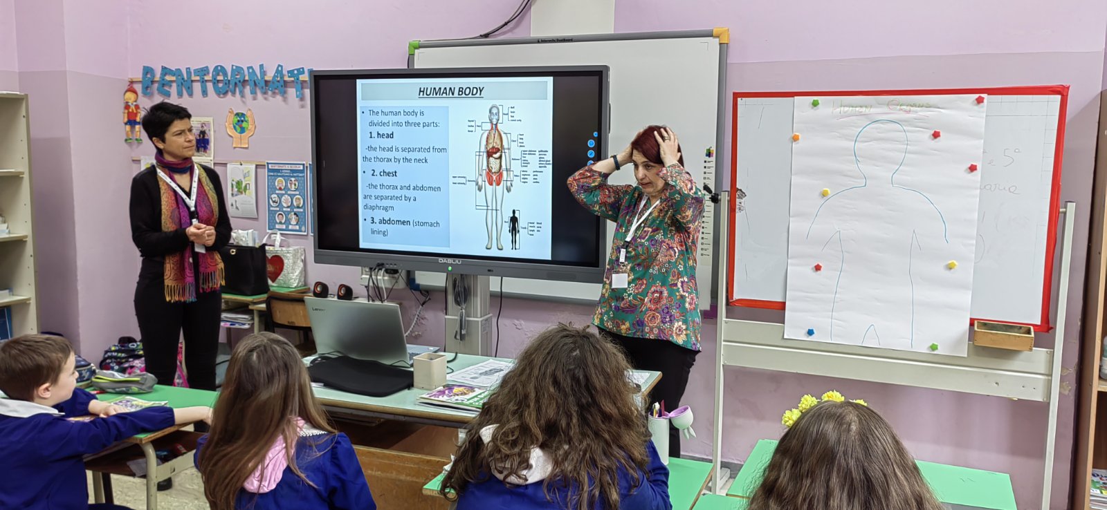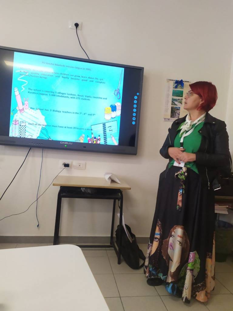 Во рамки на мобилноста од страна на сите учесници во проектот се реализирааа часови во четврто и петто одделение во училиштето во Carovili, а потоа следуваше дискусија околу нивната ефикасност во реализација на целите на современ интерактивен начин. Од наша страна беа реализирани часови со наставните содржини: „Човечкото тело” и „Клетки“. Часовите беа реализирани преку техники за тројна интерактивност, како и со голема соработка и заинтересираност од страна на учениците. Исто така секоја земја учесник имаше презентација за својата национална програма за работа по биологија и географија, како и реализација на наставата по овие предмети во самото училиште. Во текот на работната недела секоја земја имаше и презентација на стари локален занаети. Преку интересни презентации се направи запознавање со спецификите и културата од сите земји.