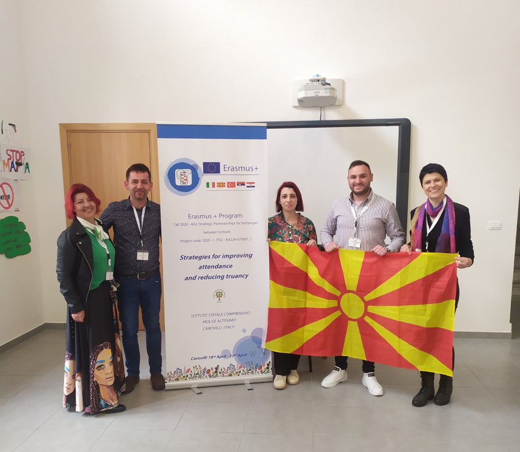 Во периодот од 18.04.2023 до 22.04.2023 во Италија, гратчето Isernia, се одржа петтата и последна образовна мобилност од Еразмус+ проектот ,,Strategies for improving attendance and reducing truancy” („Стратегии за подобрување присуство и бегање од часови“). На оваа мобилност присуствуваа претставници од училиштата од сите партнери во проектот: Македонија, Србија, Словенија, Турција и домаќините – Италија. Од нашето училиште претставници на оваа мобилност беа: наставничката по англиски јазик Елисабета Настоска, педагогот Весна Терзиоска, директорот Сашо Климоски, како и наставниците: Емилија Блажеска и Петар Киселинов.