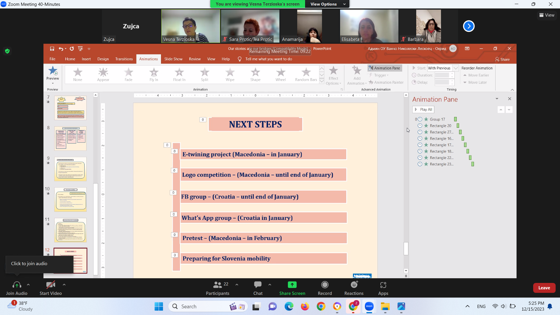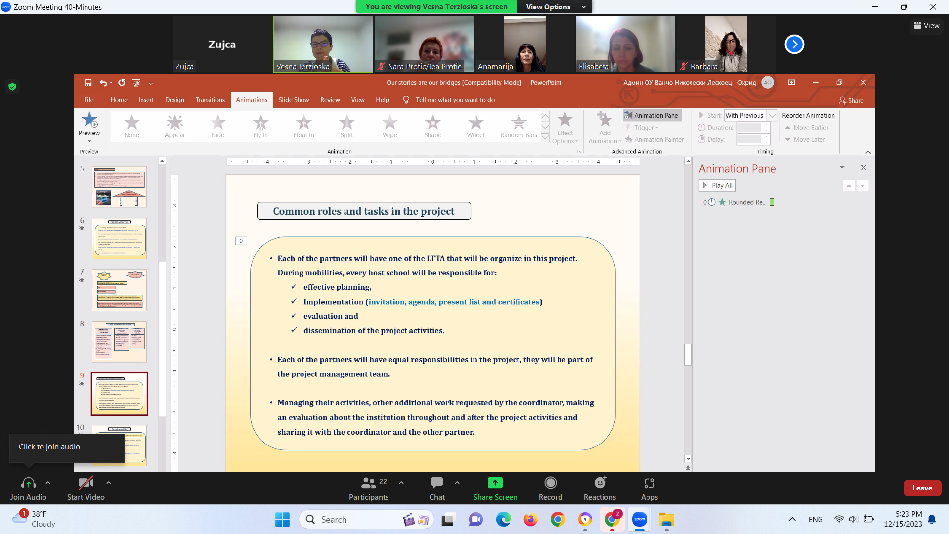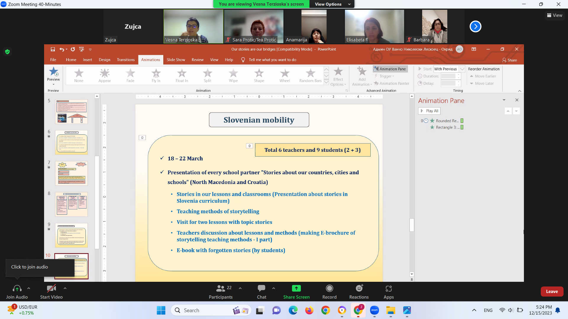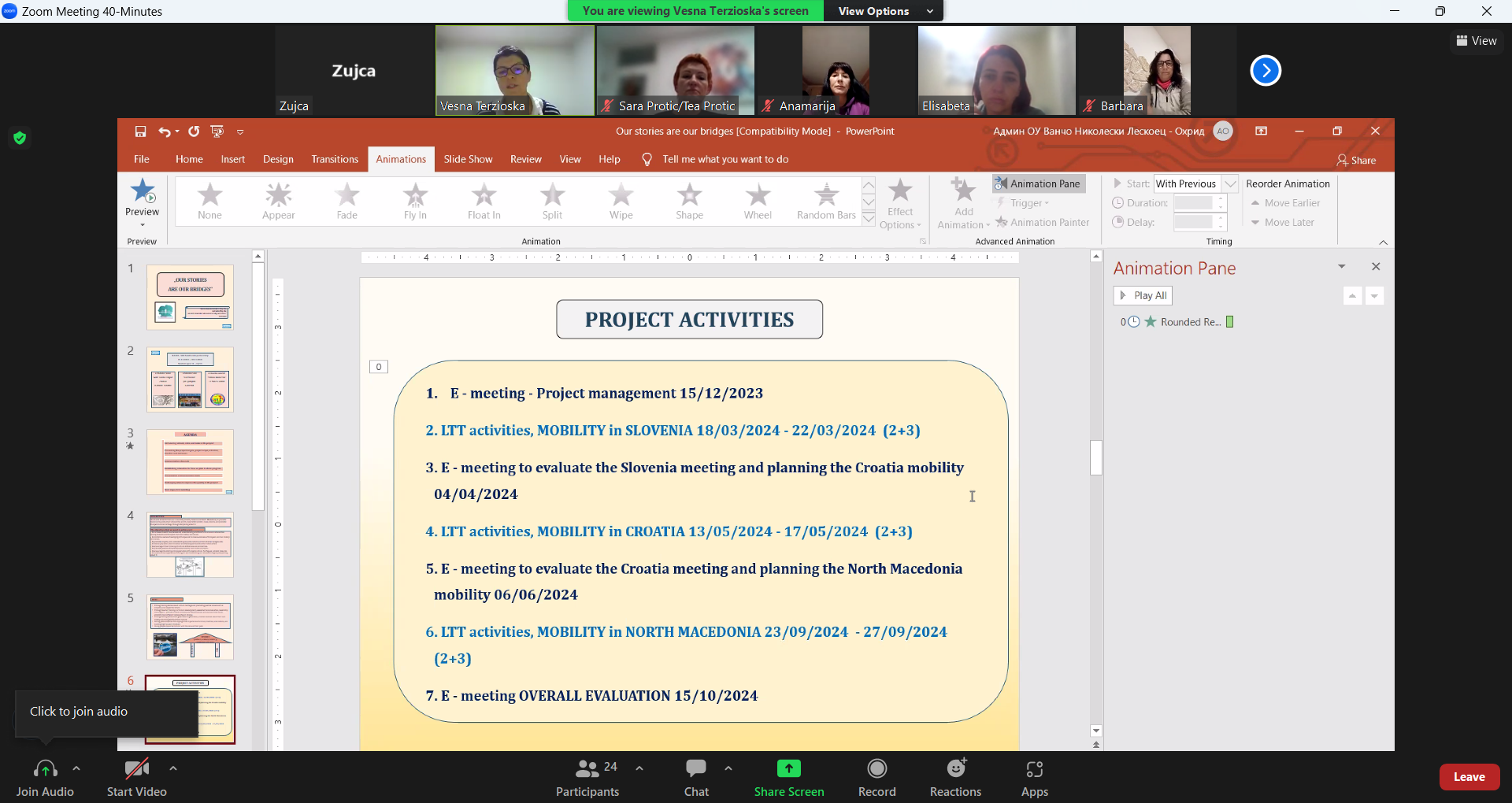 Првата виртуелна мобилност заврши со поделба на обрвски и задачи за реализација во периодот пред првата ЛТТА образовна мобилност во Словенија во месец Март 2024 година.