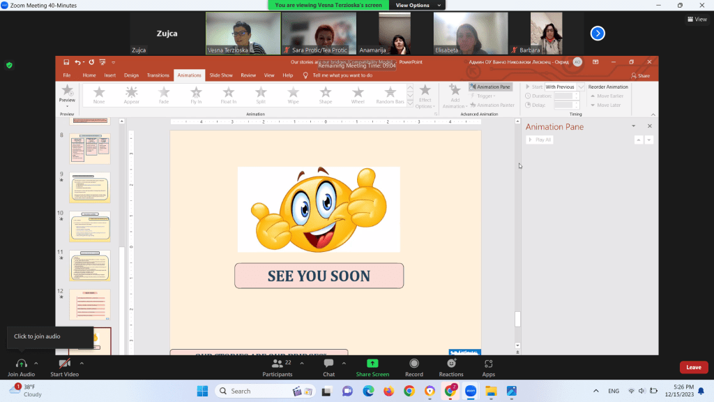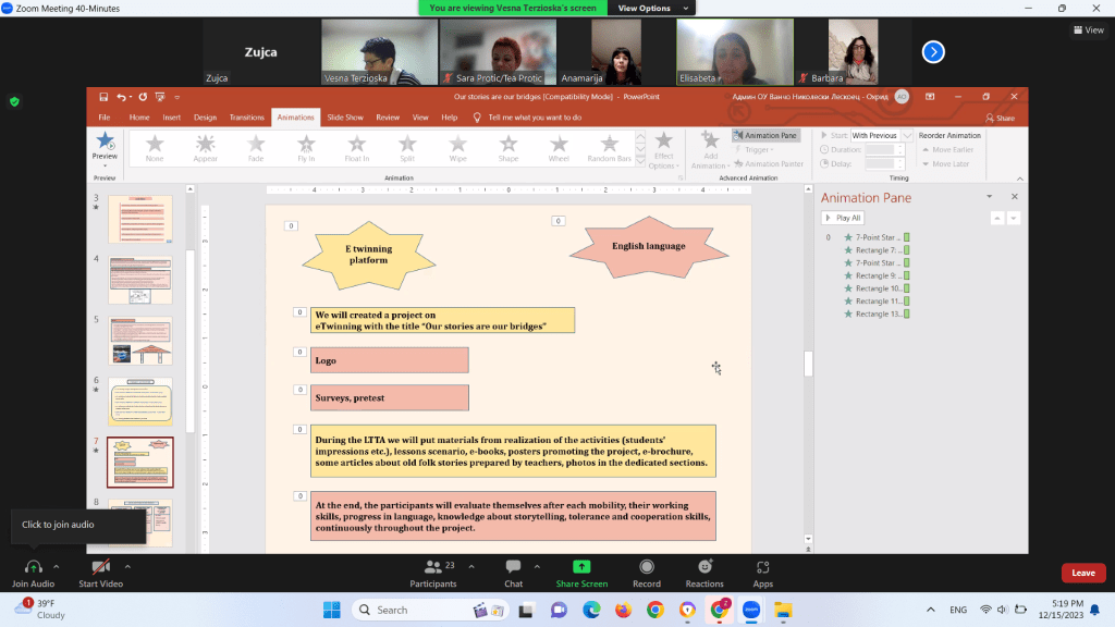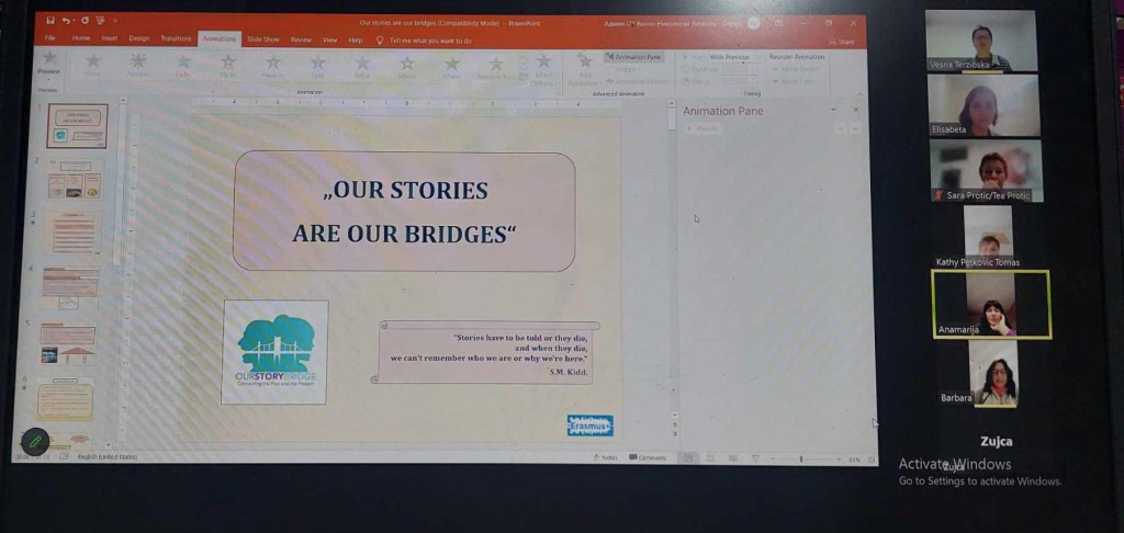 Во рамки на проектот „Our stories are our bridges“ или „Нашите приказни се наши мостови“ на 15.12.2023 година се реализира првата виртуелна (онлајн) мобилност.