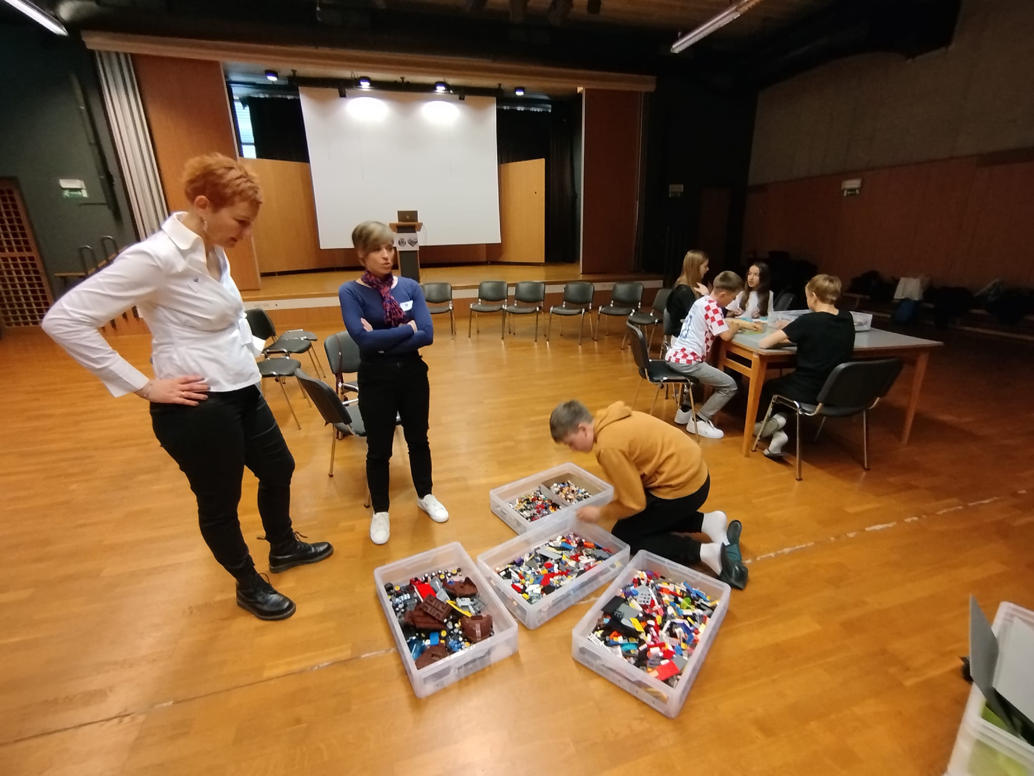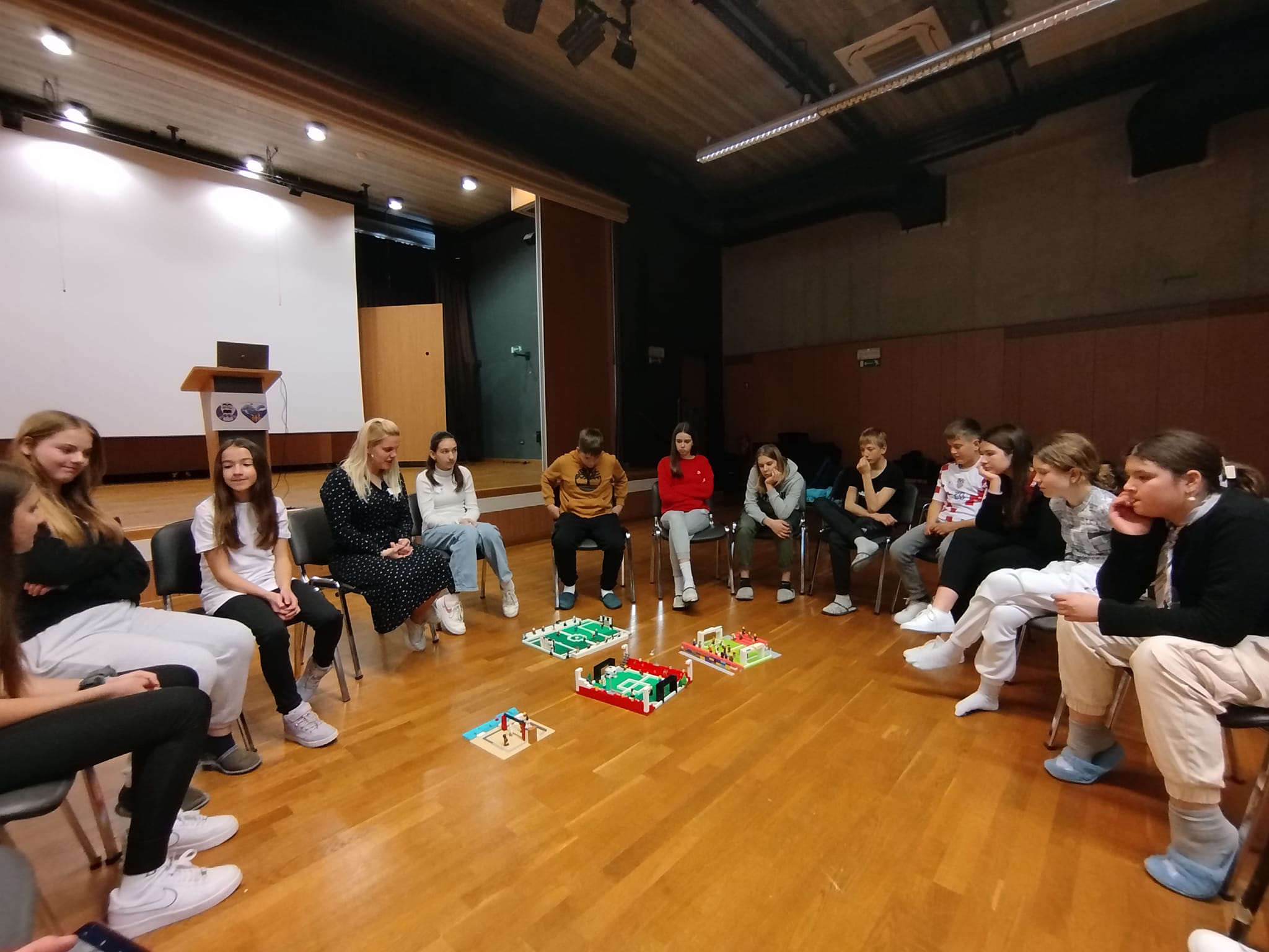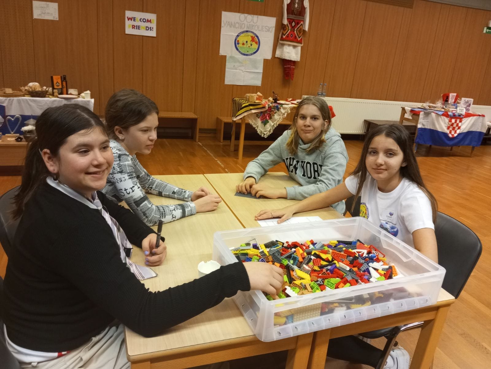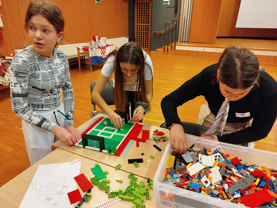 👉 Работилница за учениците: „Мојата земја во спортот“ – учениците во мешани групи изградија заеднички спортски терен со Лего коцки.