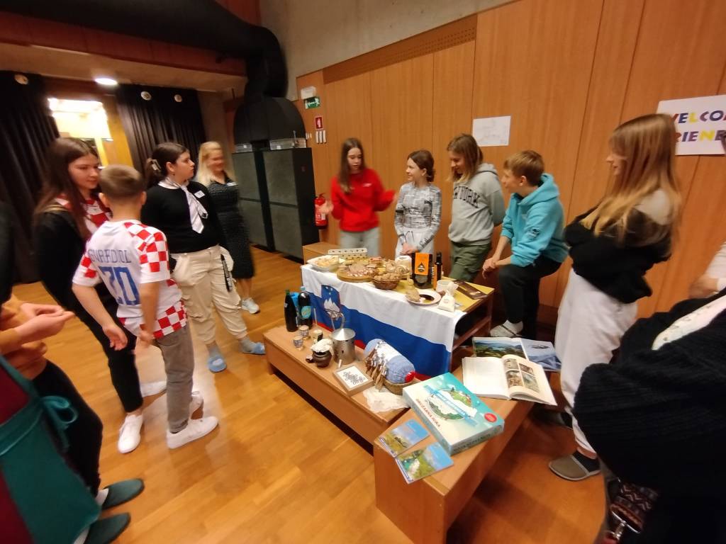 👉 Тимот од секоја земја партнер креираше и презентираше свое катче (словенечко, хрватско и македонско катче) со различни материјали, храна, опрема, пијалоци, сувенири, фолк елементи и сл., кои ја претставуваа културата, историјата, традицијата и обичаите на секоја земја.