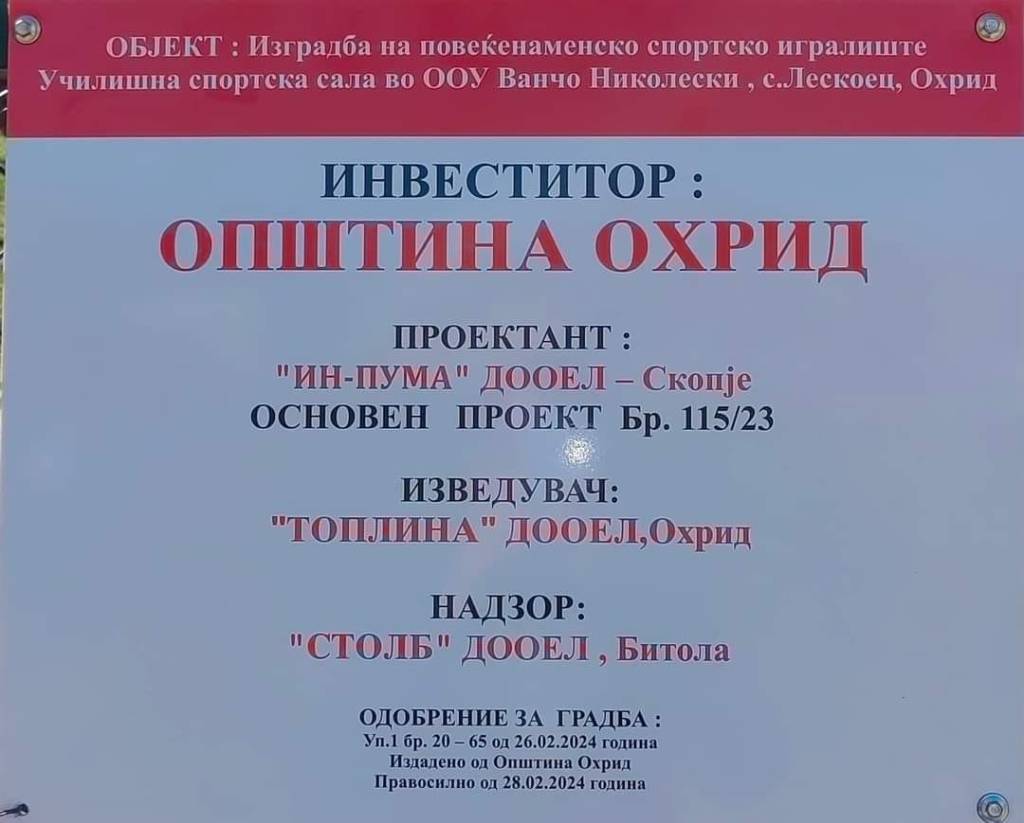 Во ООУ “Ванчо Николески” во Лескоец започнаа активности за изградба на голем капитален и значаен проект за учениците од училиштето и жителите од Лескоец, а тоа е СПОРТСКА САЛА.