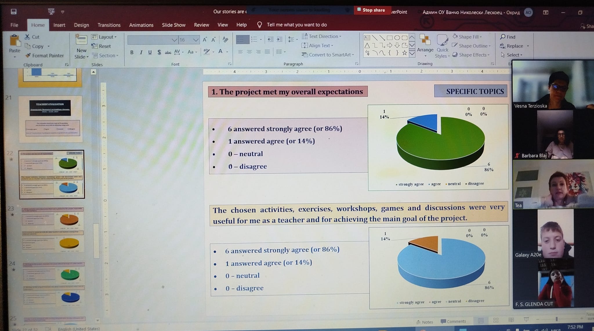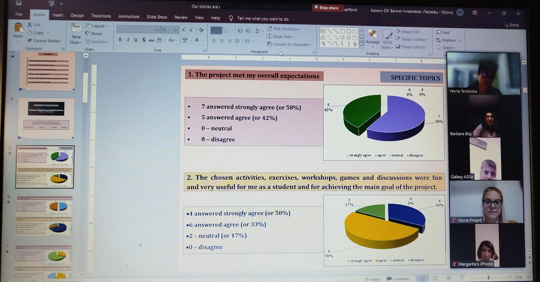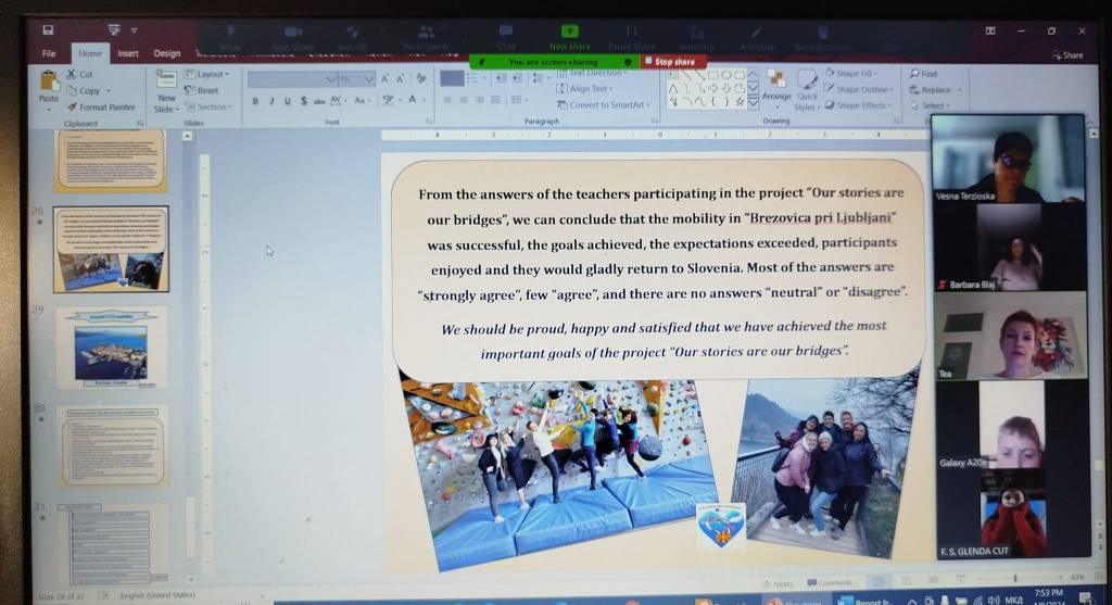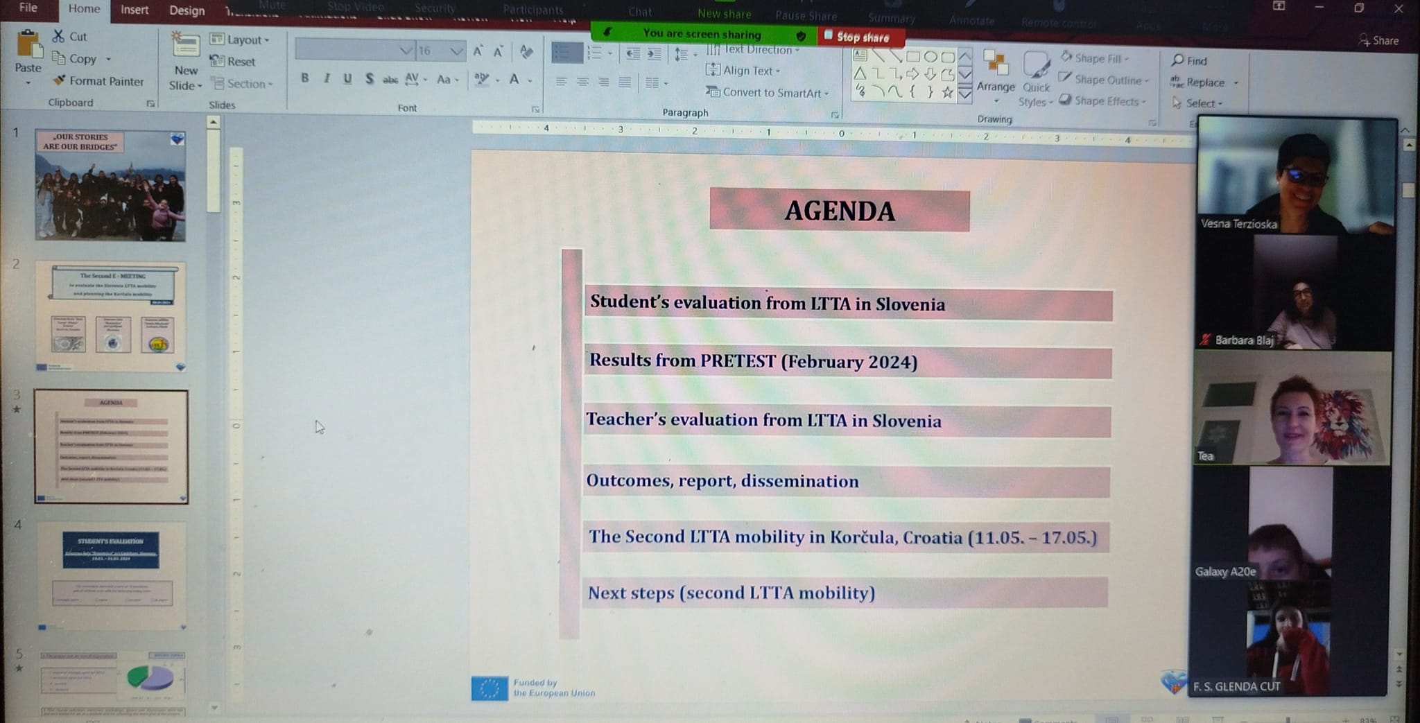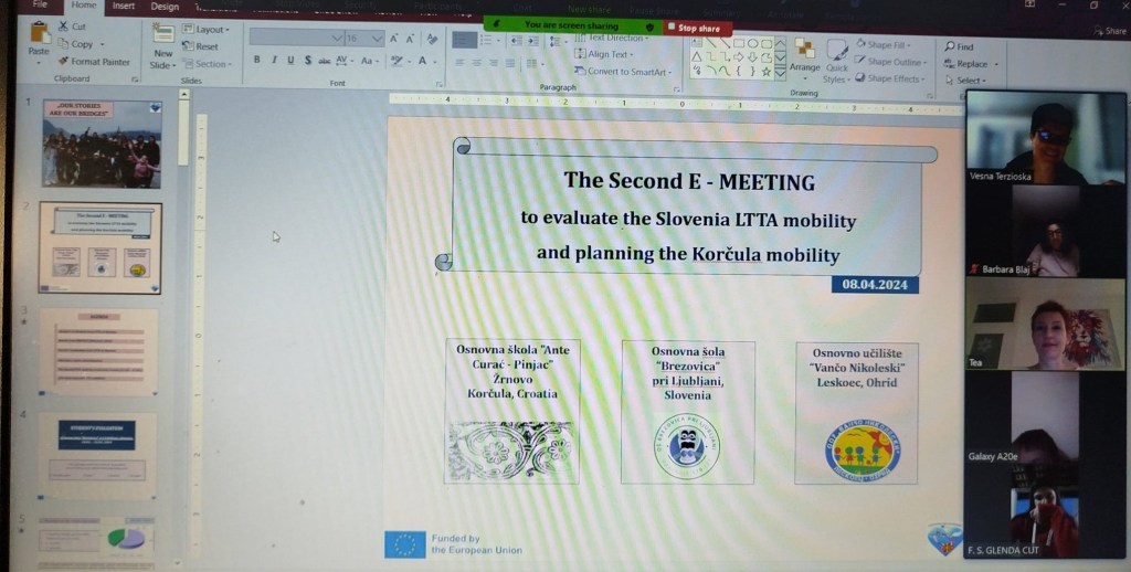 Во рамките на проектот „Нашите приказни се наши мостови“ на 08.04.2024 година се реализира втората виртуелна (онлајн) активност. На истата учествуваа наставници и ученици од трите земји учеснички во проектот (Македонија, Хрватска и Словенија).