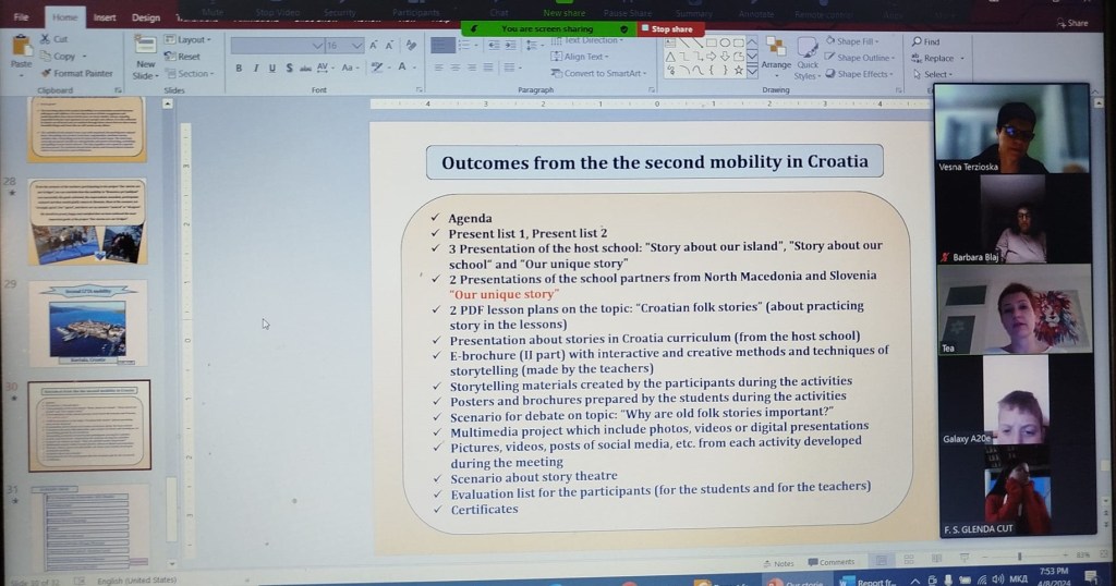 Втората виртуелна мобилност заврши со задачите што треба да се реализираат во периодот пред втората LTTA образовна мобилност во Корчула, Хрватска во мај 2024 година.