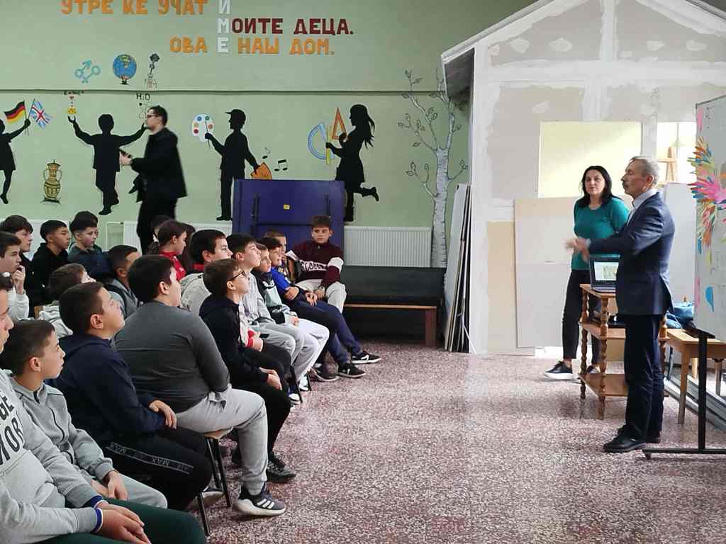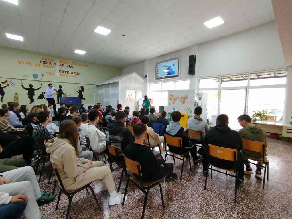 На 11.11.2025 десетчлена делегација од професори и доктори на науки од Сеизмолошката опсерваторија при Природно-математичкиот факултет во Скопје, за целите на проектот „Мапирање на потенцијални геохазарди со посебен акцент на сеизмолошки податоци”, го посетија нашето училиште и одржаа едукативни предавања и интерактивни работилници за заштита од земјотрес со учениците од предметна настава.