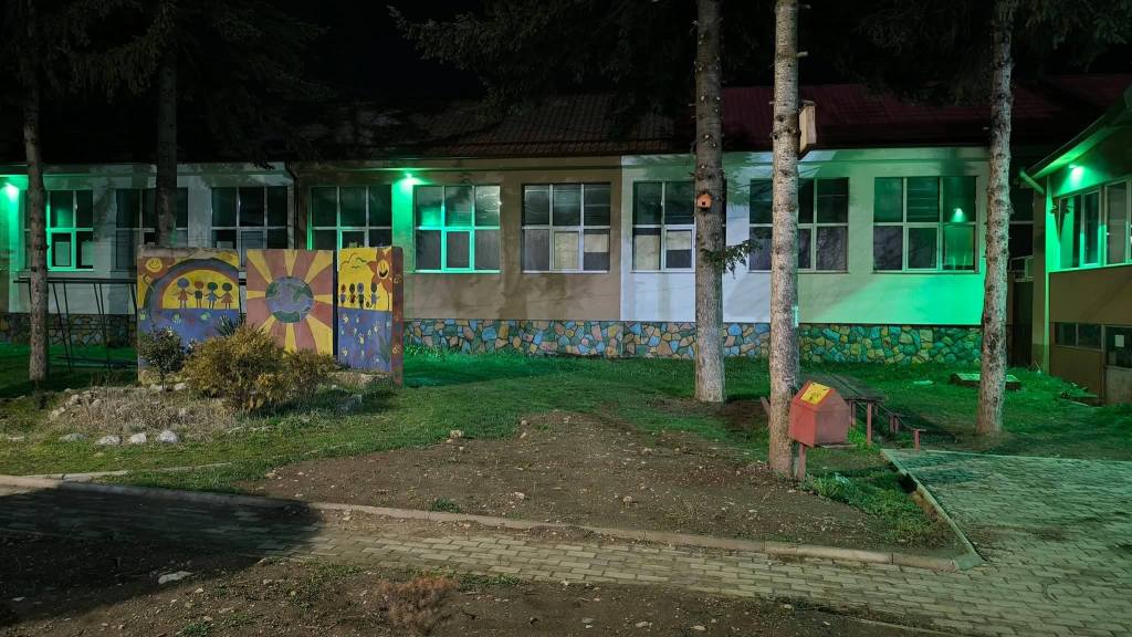 Училиштето беше осветлено во шарени бои како поддршка за овие лица.