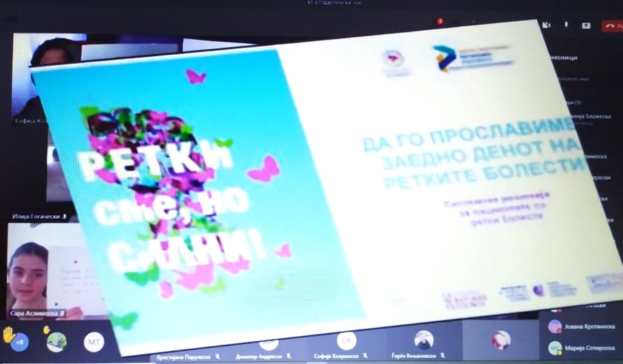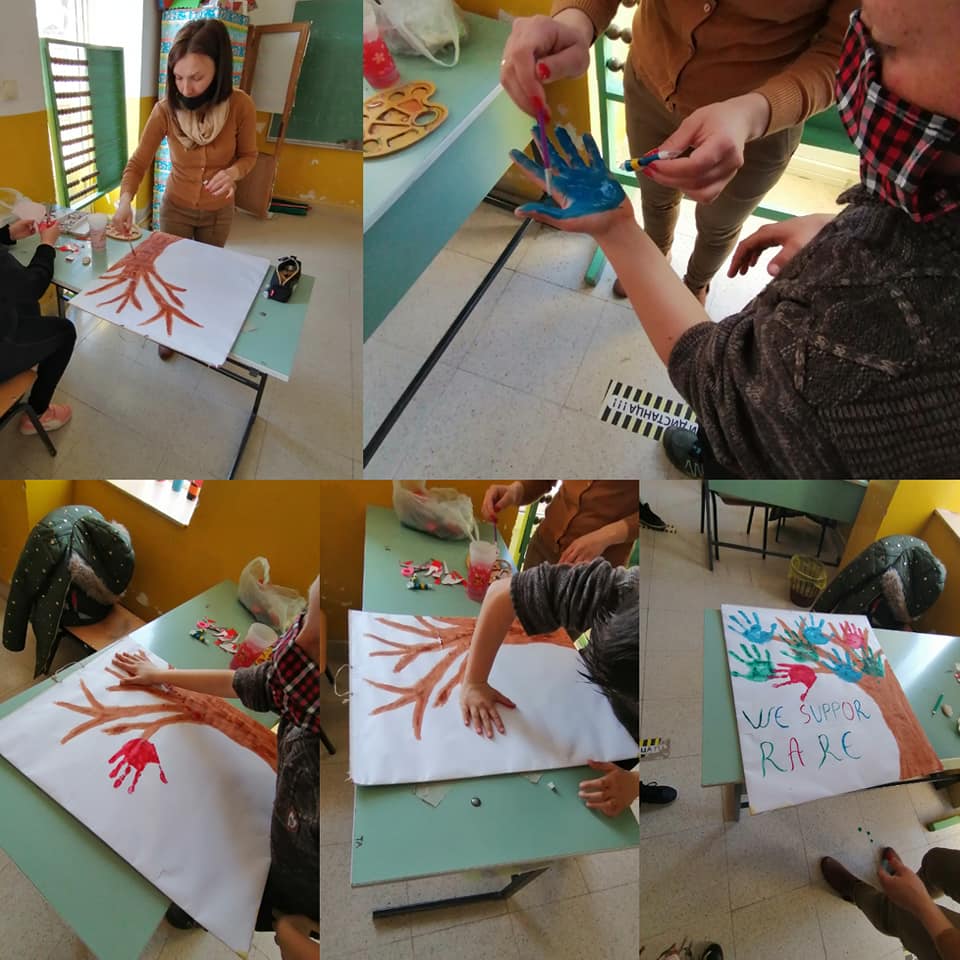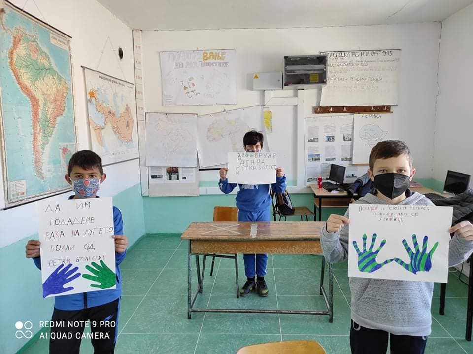 Со низа содржини и активности во текот на месец февруари, како и со единствена завршна активност на денешниот одделенски час, учениците од нашето училиште го одбележаа месецот на ретки болести. Преку фотографии, обоени лица, цртежи, пароли и пораки изразија поддршка за лицата со ретки болести и нивната спремност да се подаде рака на истите. Во активностите се вклучија учениците и од подрачните училишта, а меѓу испишаните пораки беа и следниве: „Ретките лица се храбри“, „Ретки сте, но не сте сами“, „Болеста може да е ретка, но вербата голема“, „Ретко е да си редок“, „Посилни сте отколку што изгледате“.Преку информативни содржини, разговори и креативни активности, ние како училиште секоја година се вклучуваме во поддршка на лицата со ретки болести, со тоа нашите ученици ги воспитуваме во духот на почитување, хуманост, прифаќање, помагање, толеранција и грижа за другите.